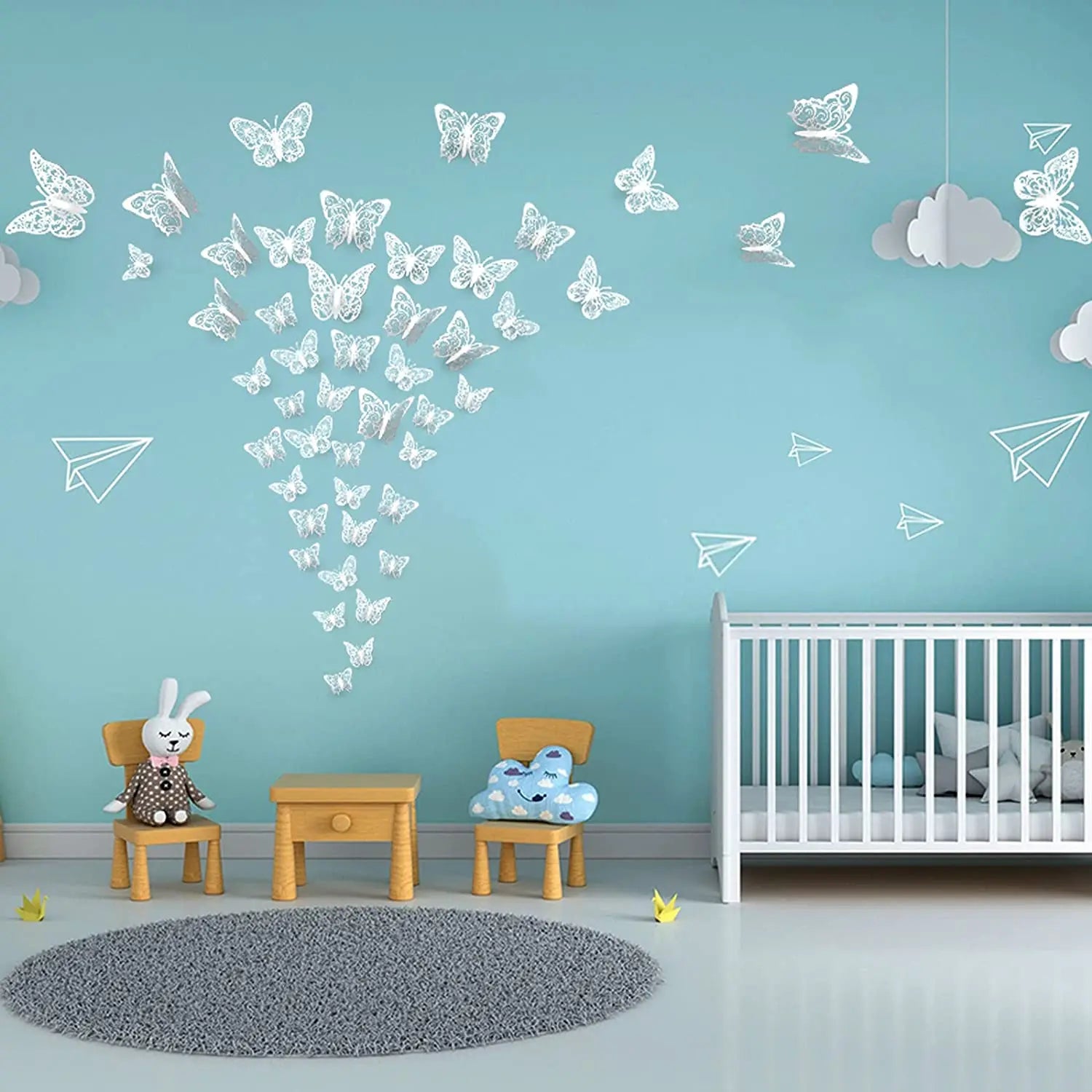 [Excellent Adhesiveness And Easy To Use] - The paper butterflies use high-quality double-sided adhesive, it is so sticky and sturdy that you don’t need to worry about them falling off from the walls or other attached places. Just stick the glue dot flat to the butterfly body, then press the butterfly cutouts on the targeted places, they will stick on it tightly.