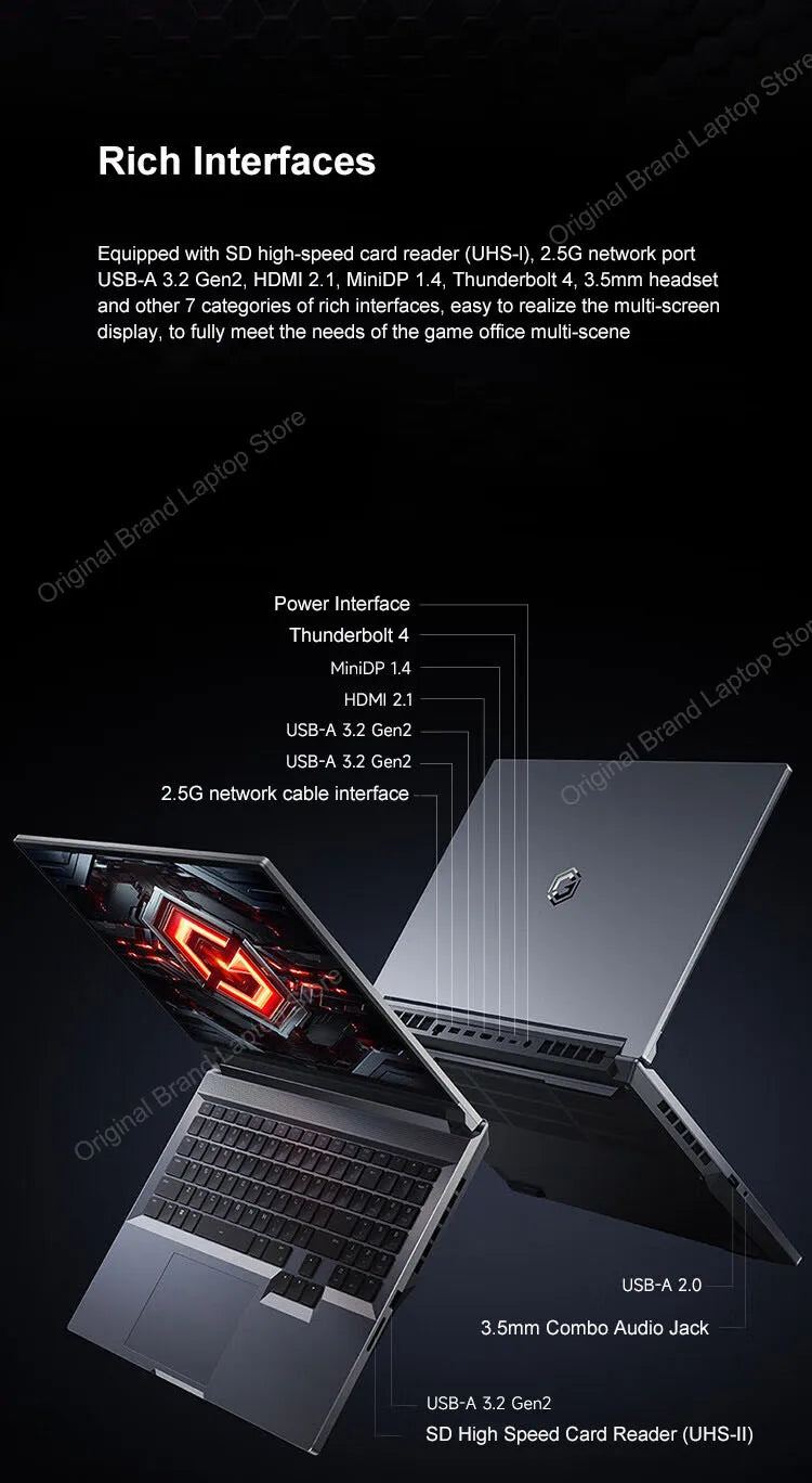 Port: Thunderbolt 4,2×USB 3.1 Gen1 ,1×USB 3.2 Gen2,Card Reader,miniDP,3.5 mm Combo Audio Jack,1*USB2.0,RJ-45,HDMI-Compatible