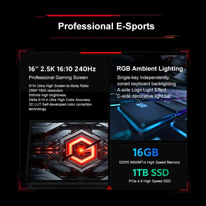 2024 Xiaomi Redmi G Pro Gaming Laptop 16 Inch 2.5K 240Hz E-Sports Screen Netbook i9-14900HX 16GB 1TB RTX4060 Gaming Notebook PC