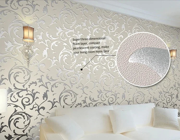 3D Grey Victorian Damask Embossed Wallpaper Roll Home Decor Living Room Bedroom Wall Coverings Silver Floral Luxury Wall Paper