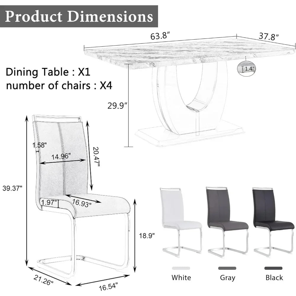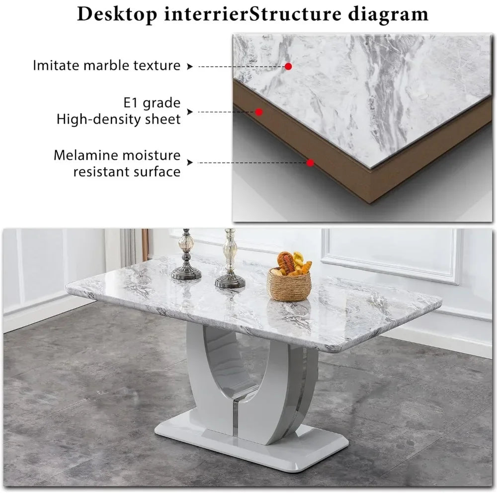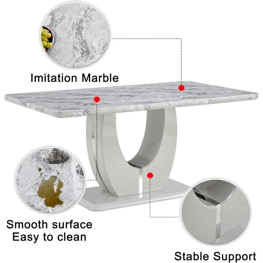 - ★【Faux Marble Dinner Table with U-Shape Pedestal Base】Base features geometric complexity. The sleek painted wood frame with metal pedestal base, which create a visually inspiring table that is as much a piece of art as a functional dining table.