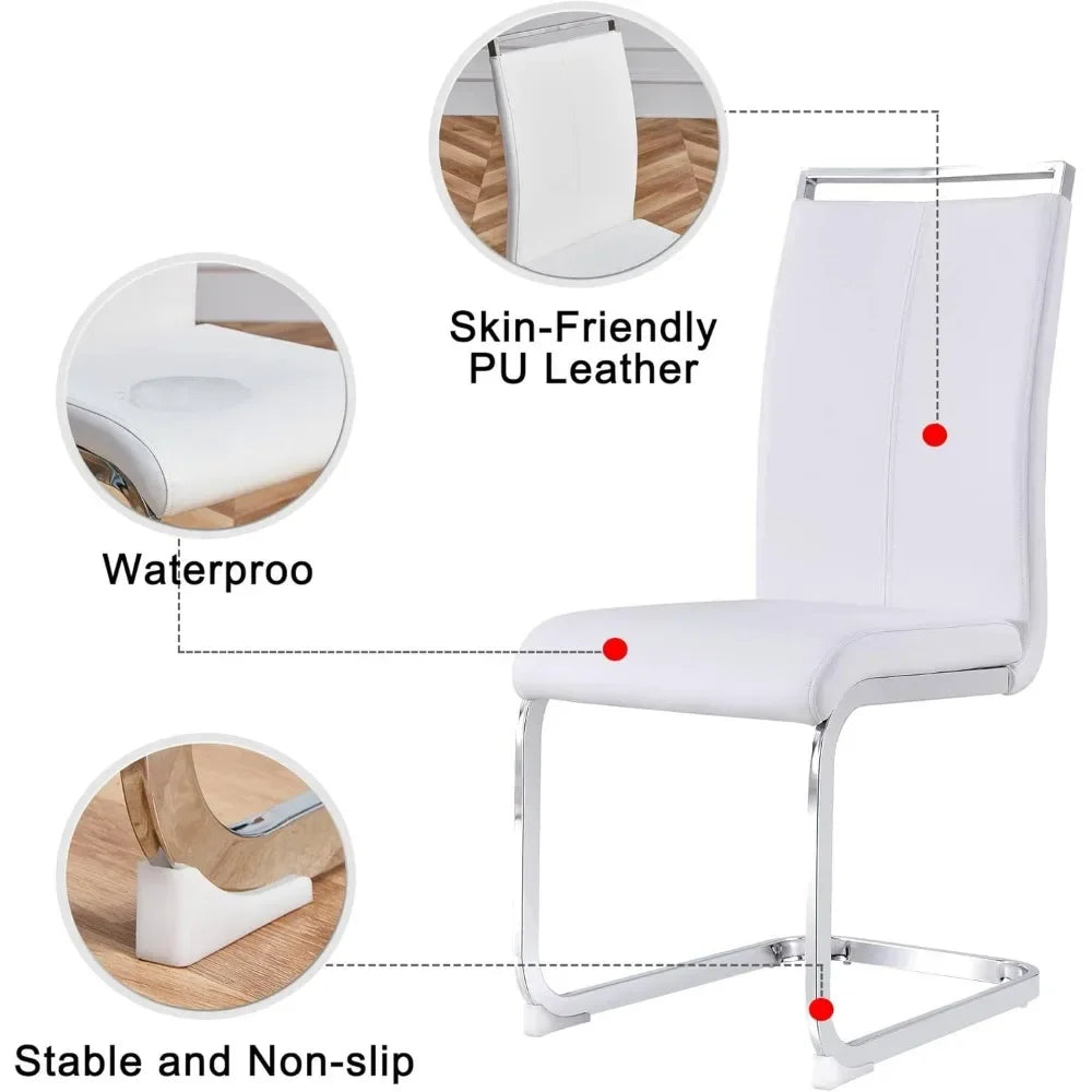 - ★【Upholstered Dining Chair with Creative C-shape Base】The pu leather dining chairs are complete with C-shaped silver metal base for uniquely modern look as well as stable and strong support. The bottom of the chair legs has a plastic anti-slip footpad.Easily protect your floor from damage caused by friction.