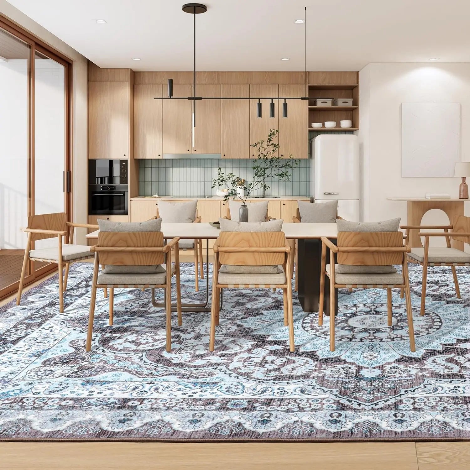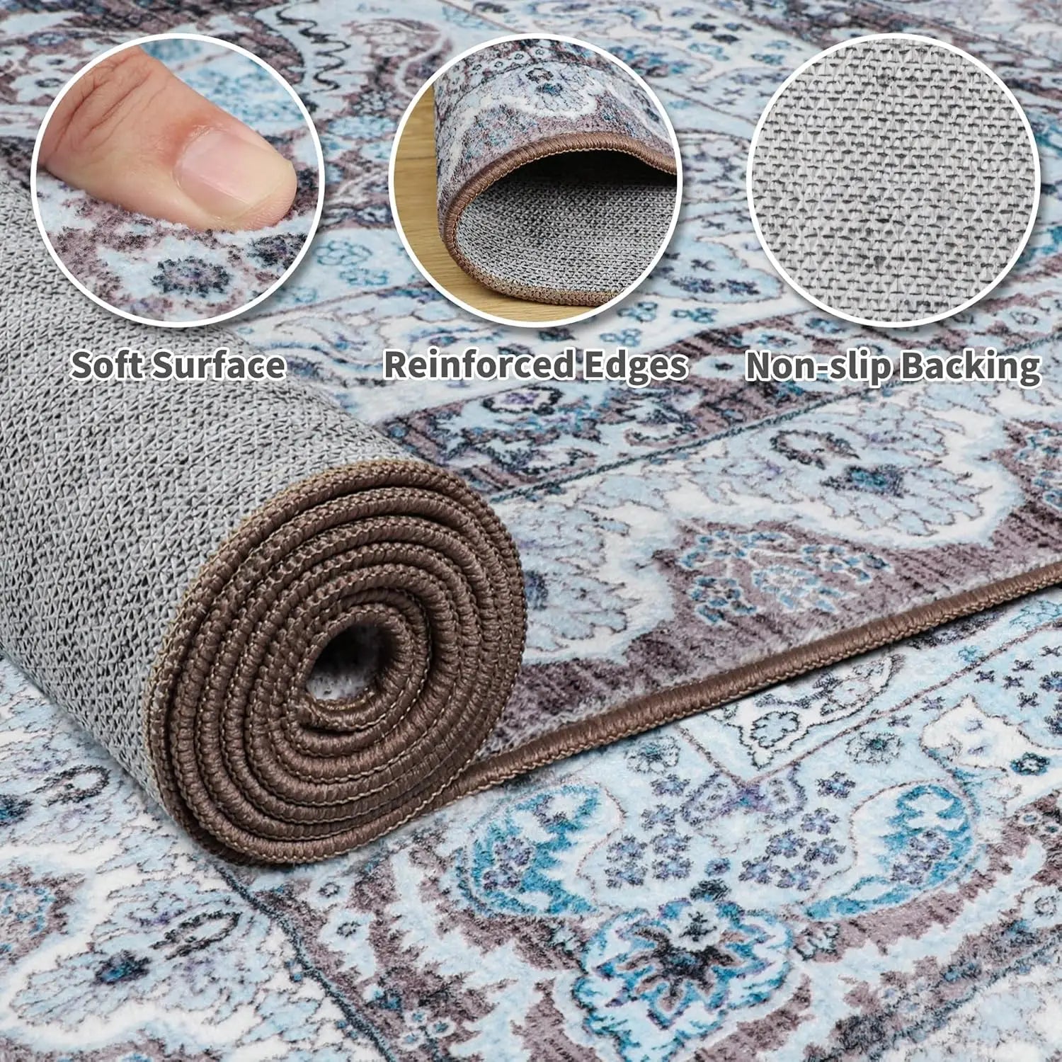 Area Rugs for Living Room, Machine Washable Vintage Rug, Non-Slip Low Pile Throw Rugs with Rubber Backing Washable Carpet