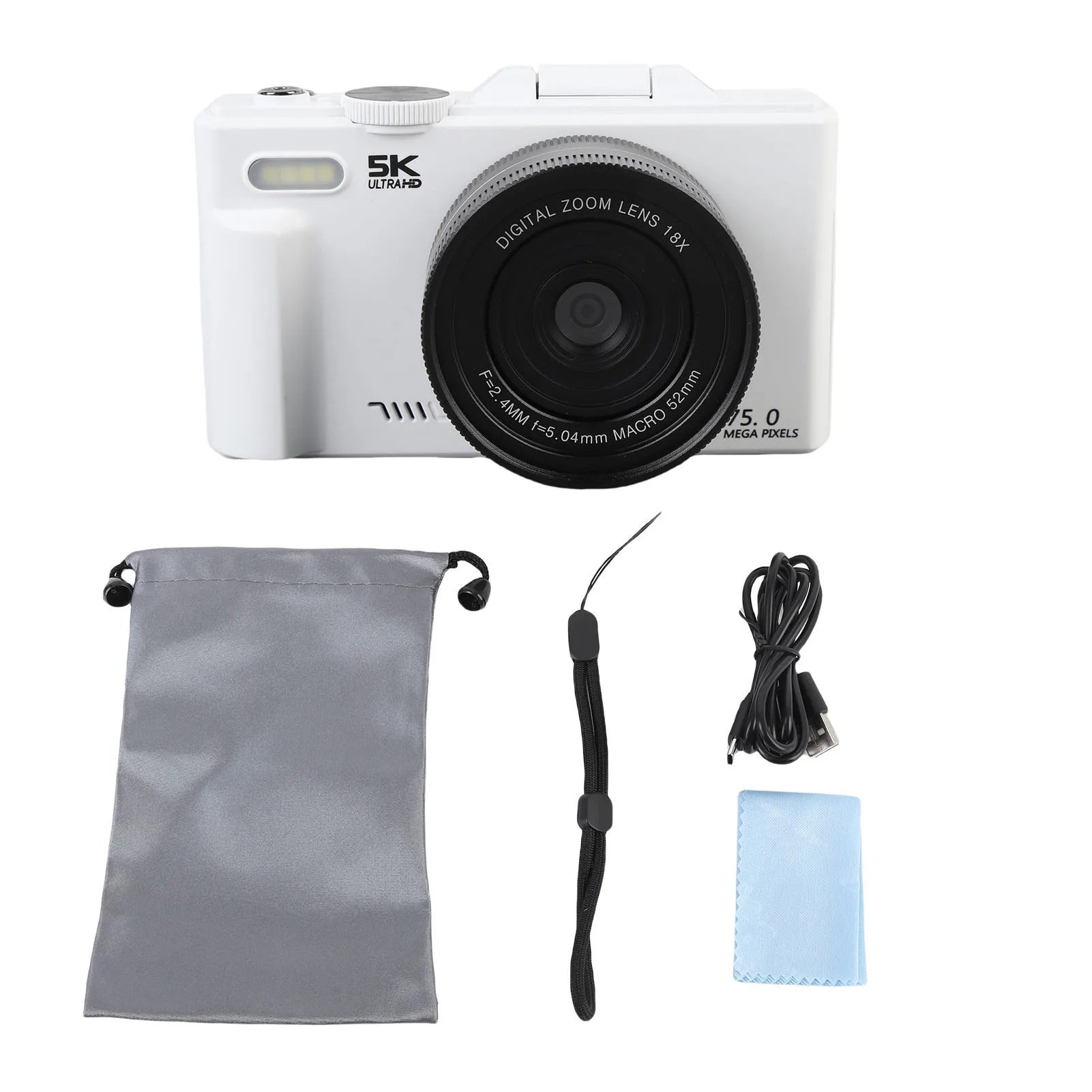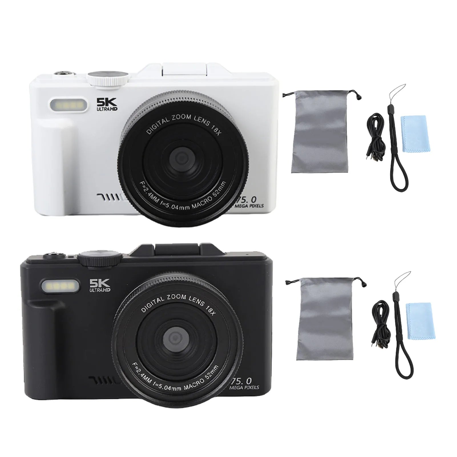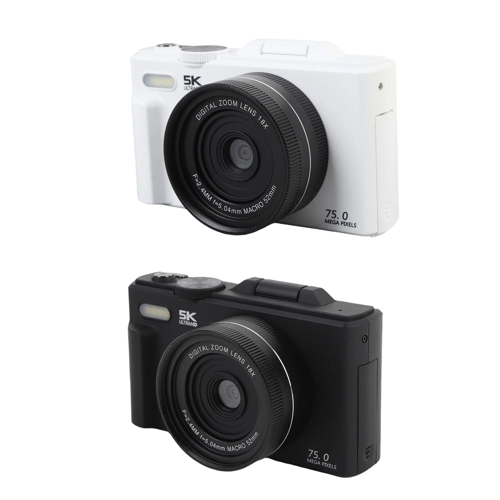 5K HD Digital Camera 75MP UHD 18XAF Autofocus 3 Inch Flip Screen WiFi Camera with Flash for Photography and Video