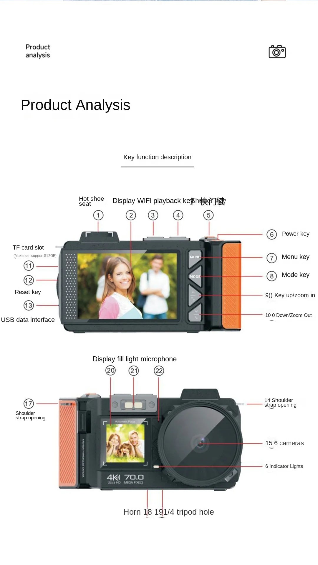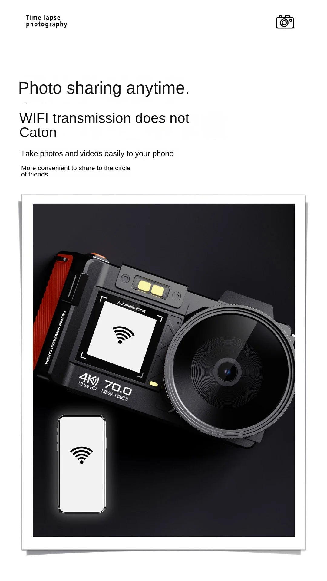 2. **WiFi Function**: Supports wireless transmission. After shooting, works can be quickly shared to devices such as mobile phones and computers, facilitating instant editing and sharing.