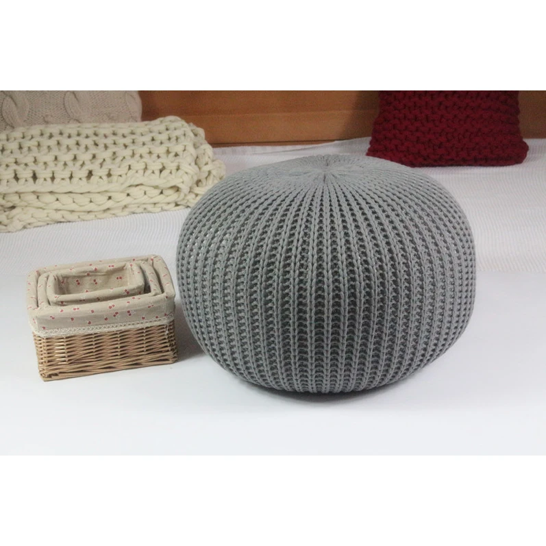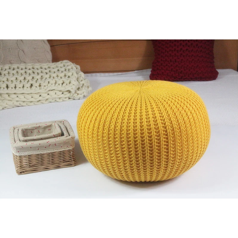 Hand Knitted Woolen Round Cushion POUF Floor Ottoman
