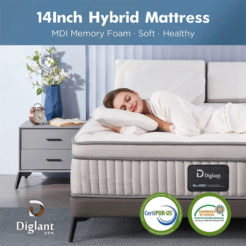 Hybrid Mattress 14 Inch Memory Foam Pocketing Spring Mattress
