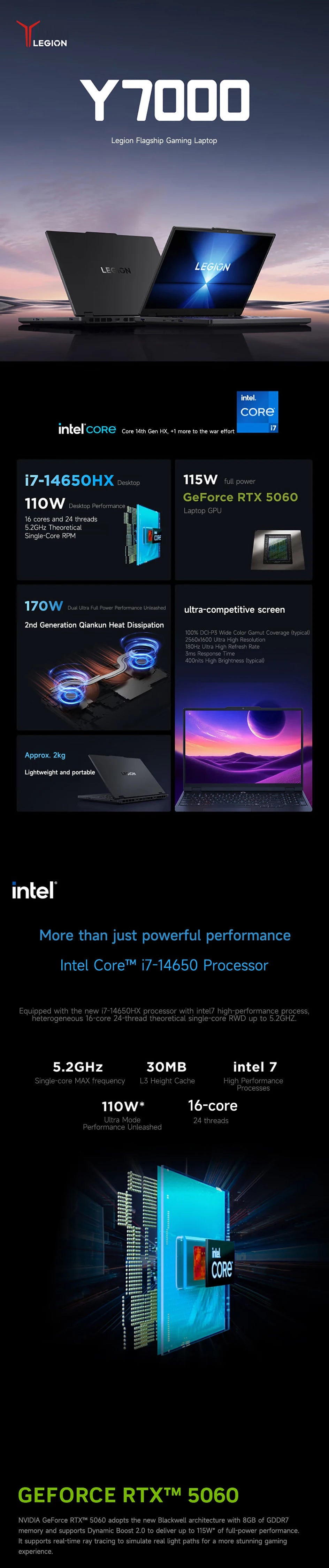Lenovo Gaming laptop LEGION Y7000 2025 notebook 15.3" 2.5K 180Hz Screen i7-13650HX/14650HX 16G/24G 512G/1T RTX5060 computer PC