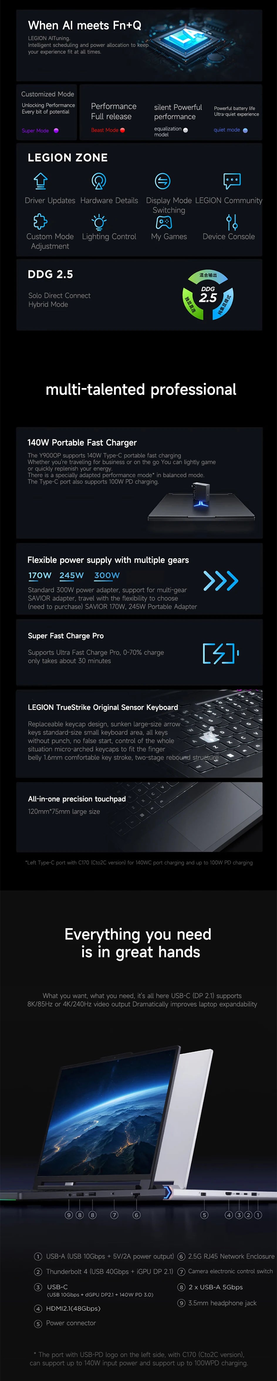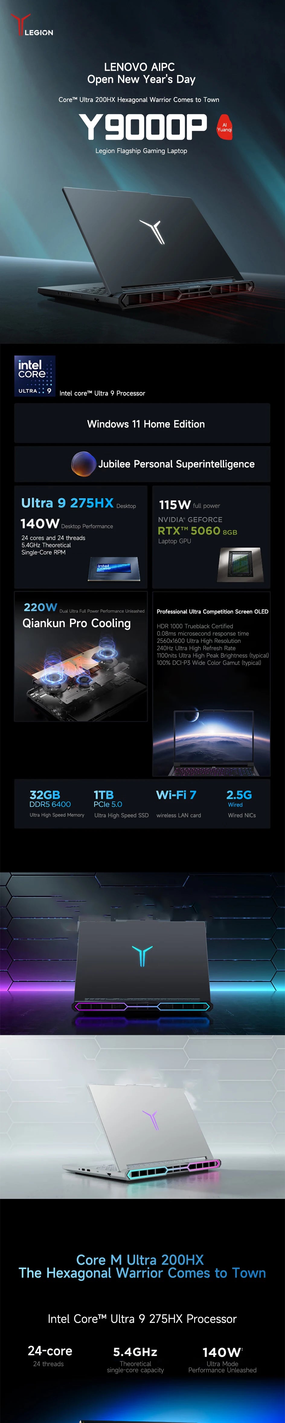Lenovo Gaming Laptop LEGION Y9000P 2025 AI Yuanqi 16-inch 2.5K 240Hz Ultra9-275HX 32GB+1TB RTX5060/RTX5070 Gaming Notebook PC