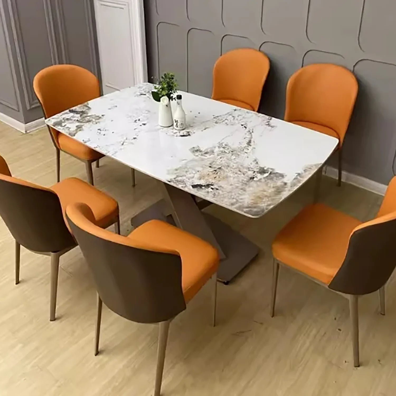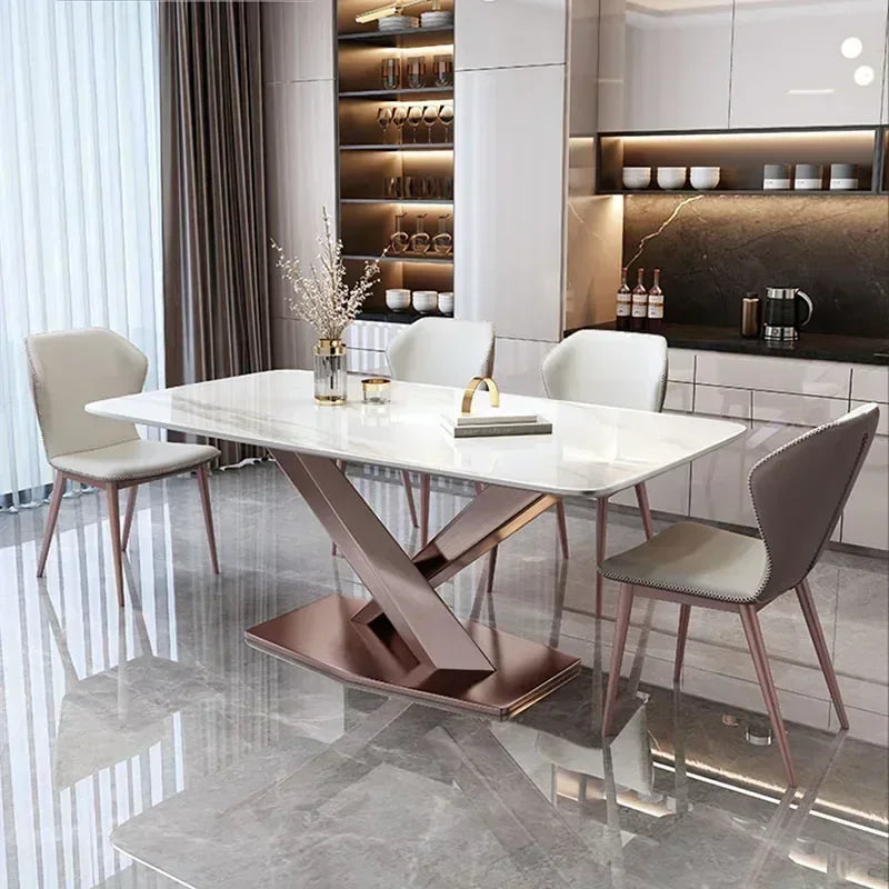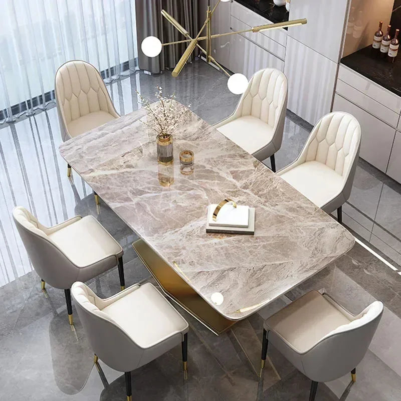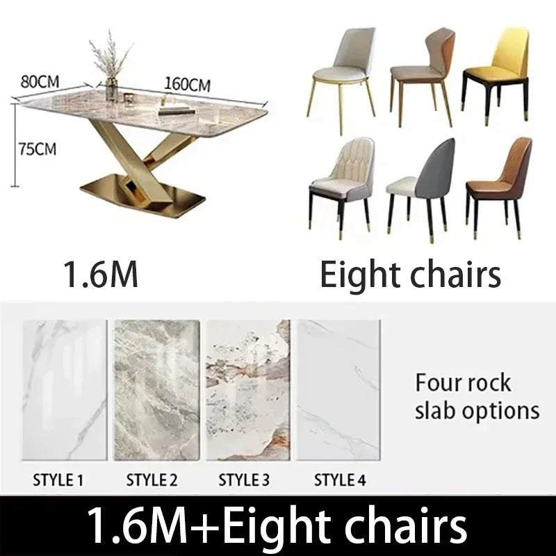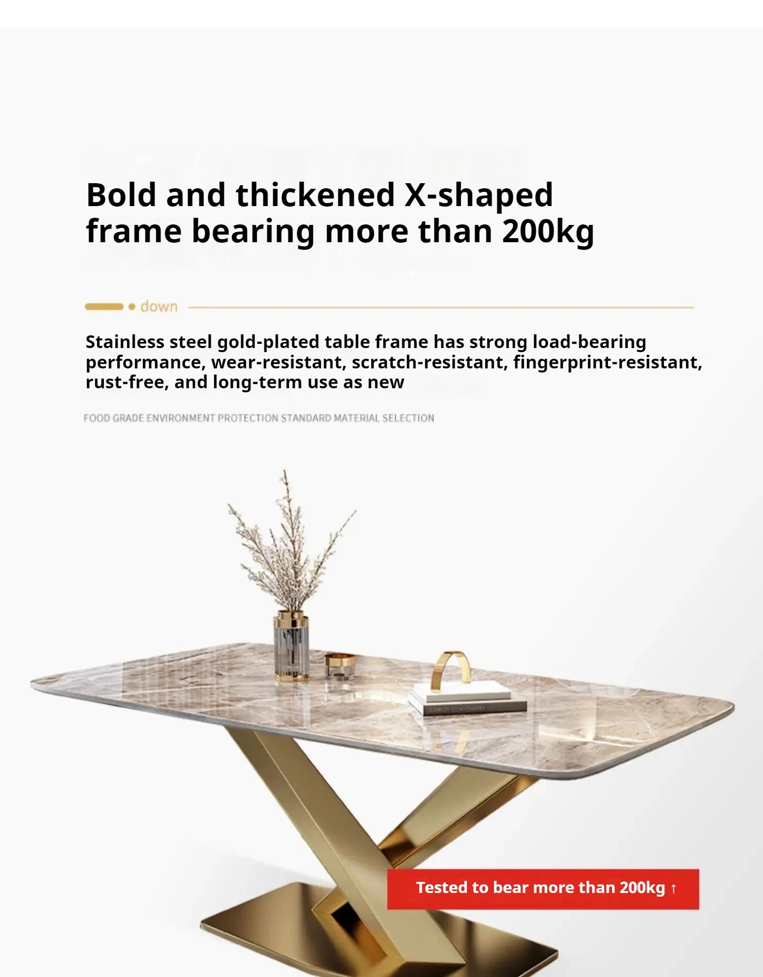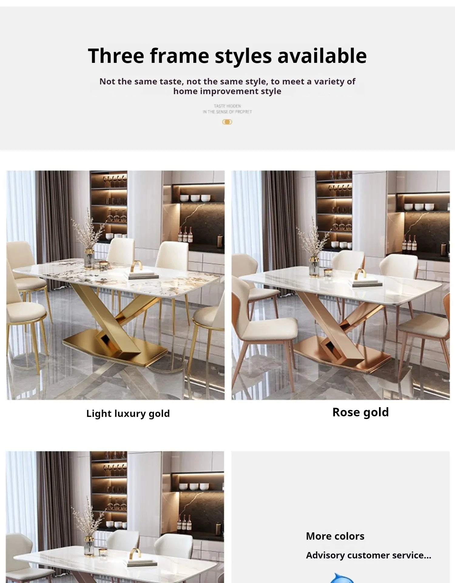 providing strong support and giving the dining table a light yet stable visual effect. The cold luster of metal contrasts sharply with the warm texture of rock slabs, yet harmoniously coexists,