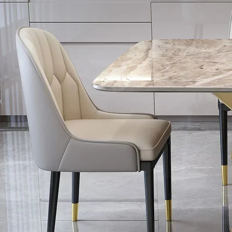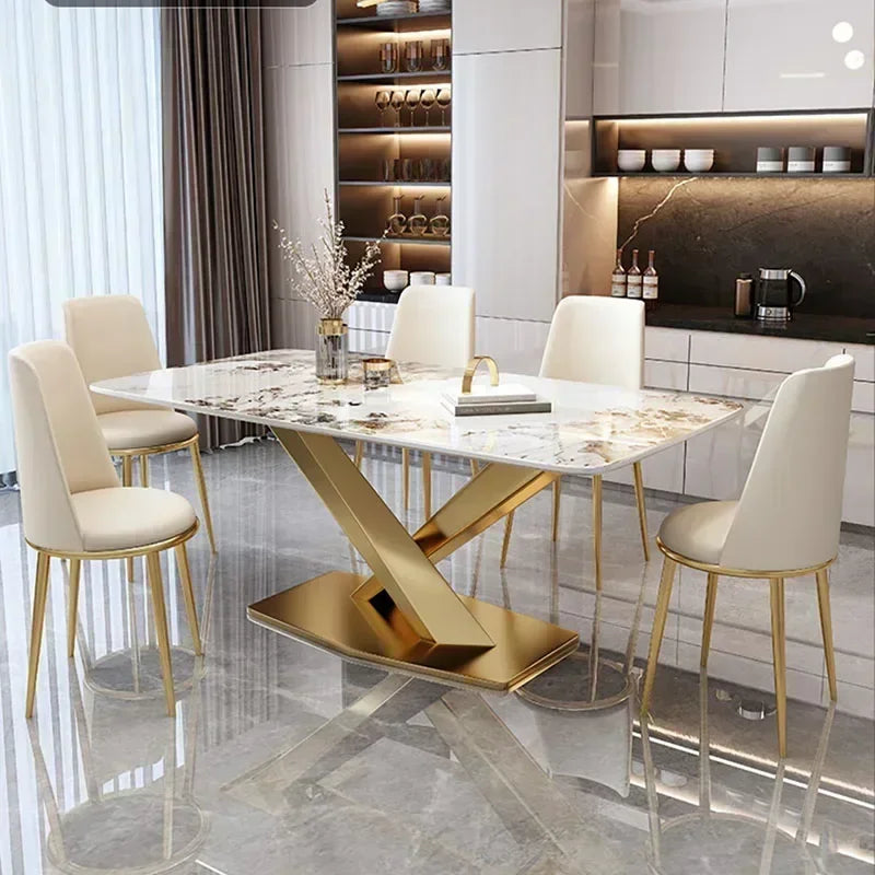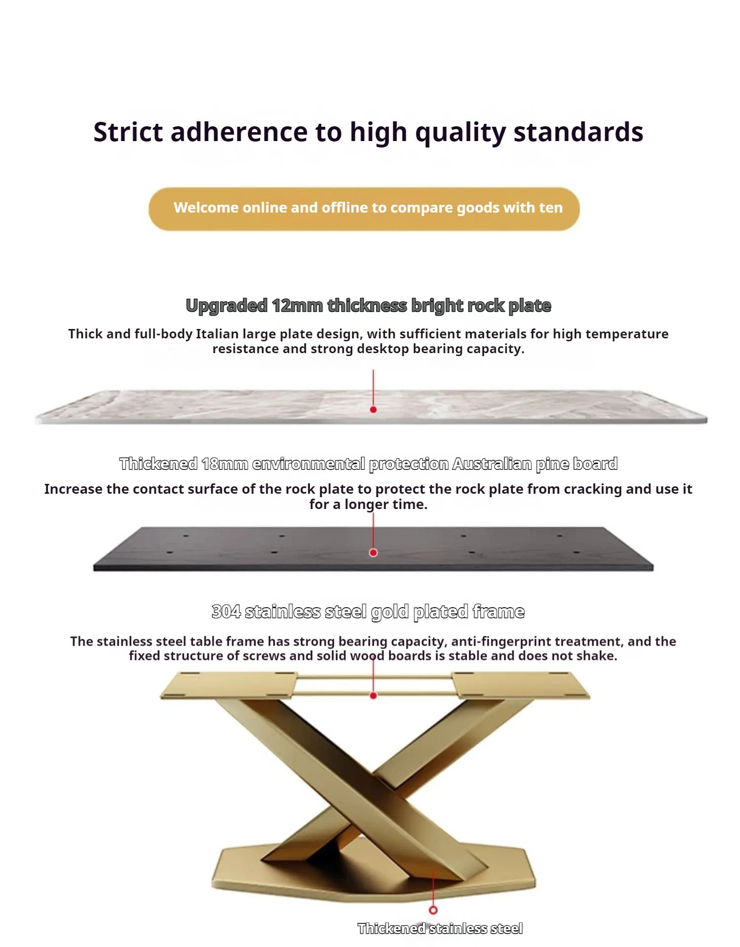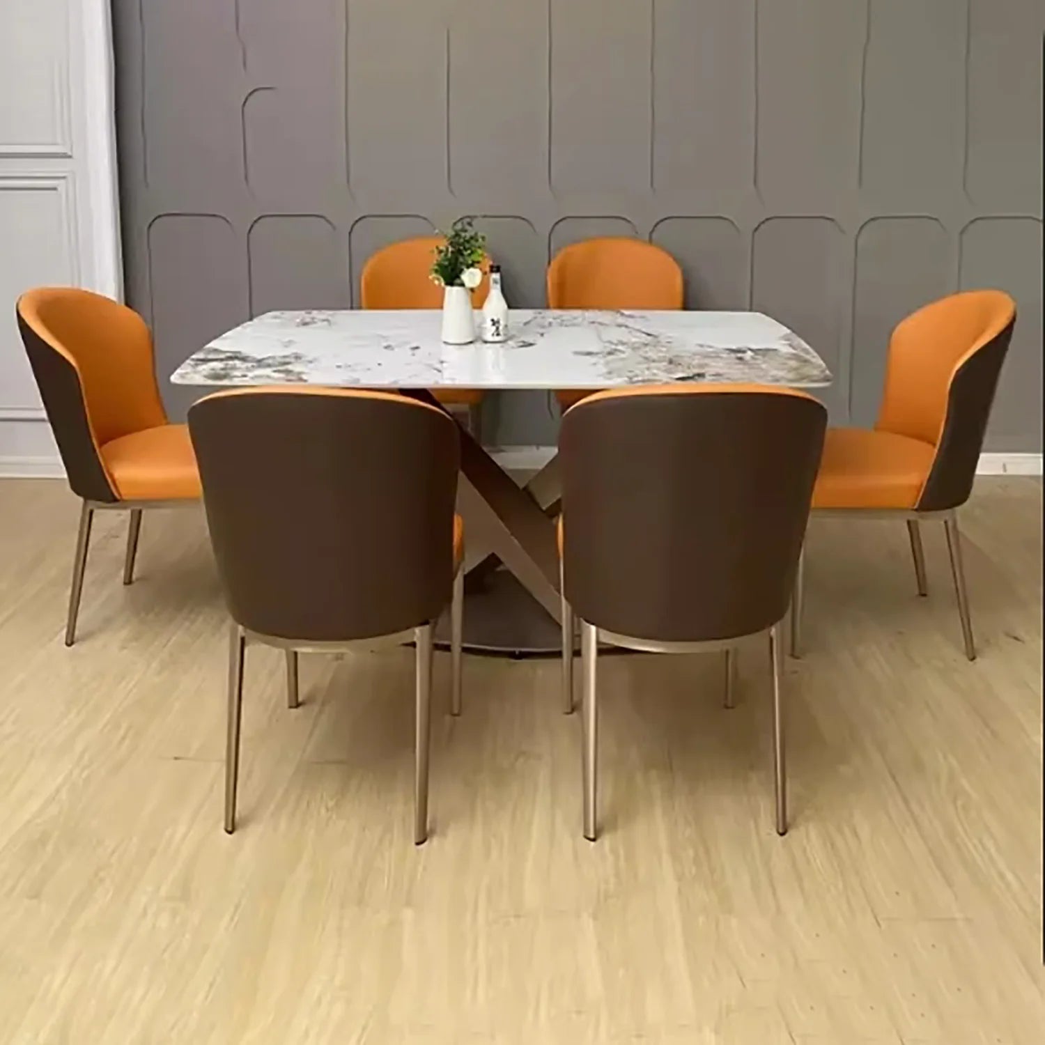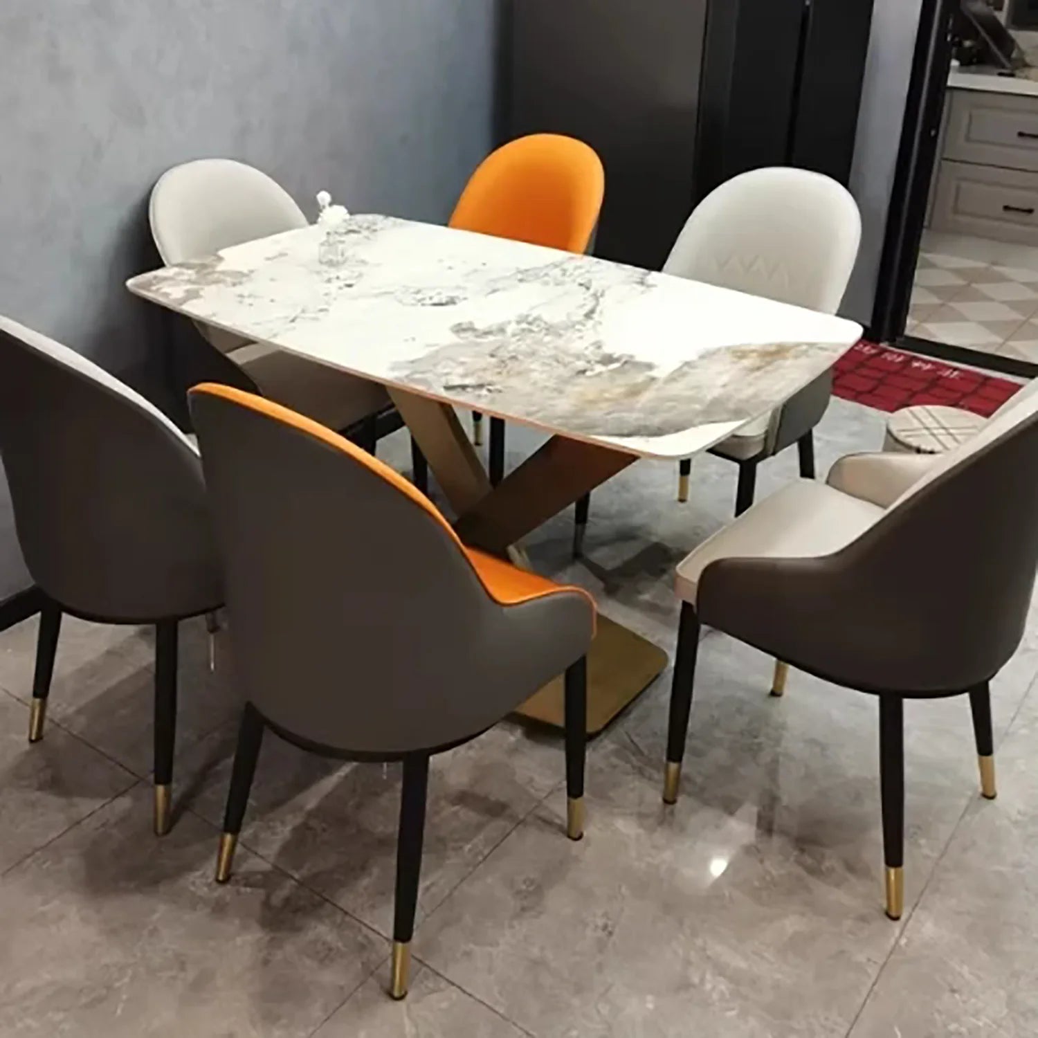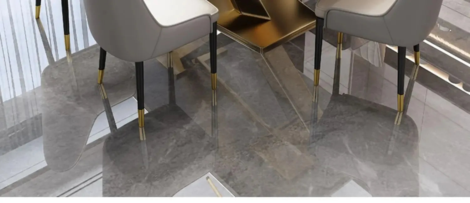 providing strong support and giving the dining table a light yet stable visual effect. The cold luster of metal contrasts sharply with the warm texture of rock slabs, yet harmoniously coexists,
