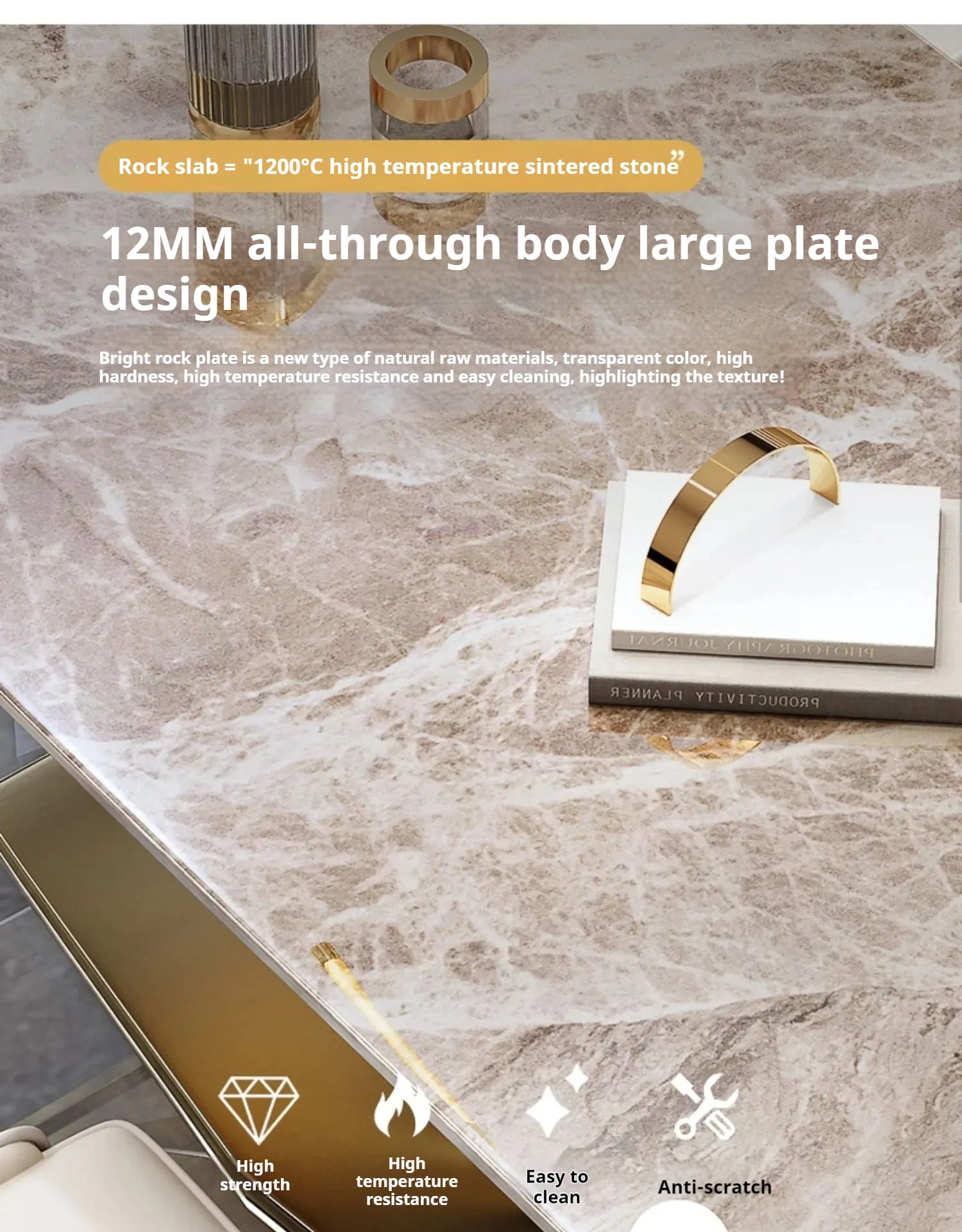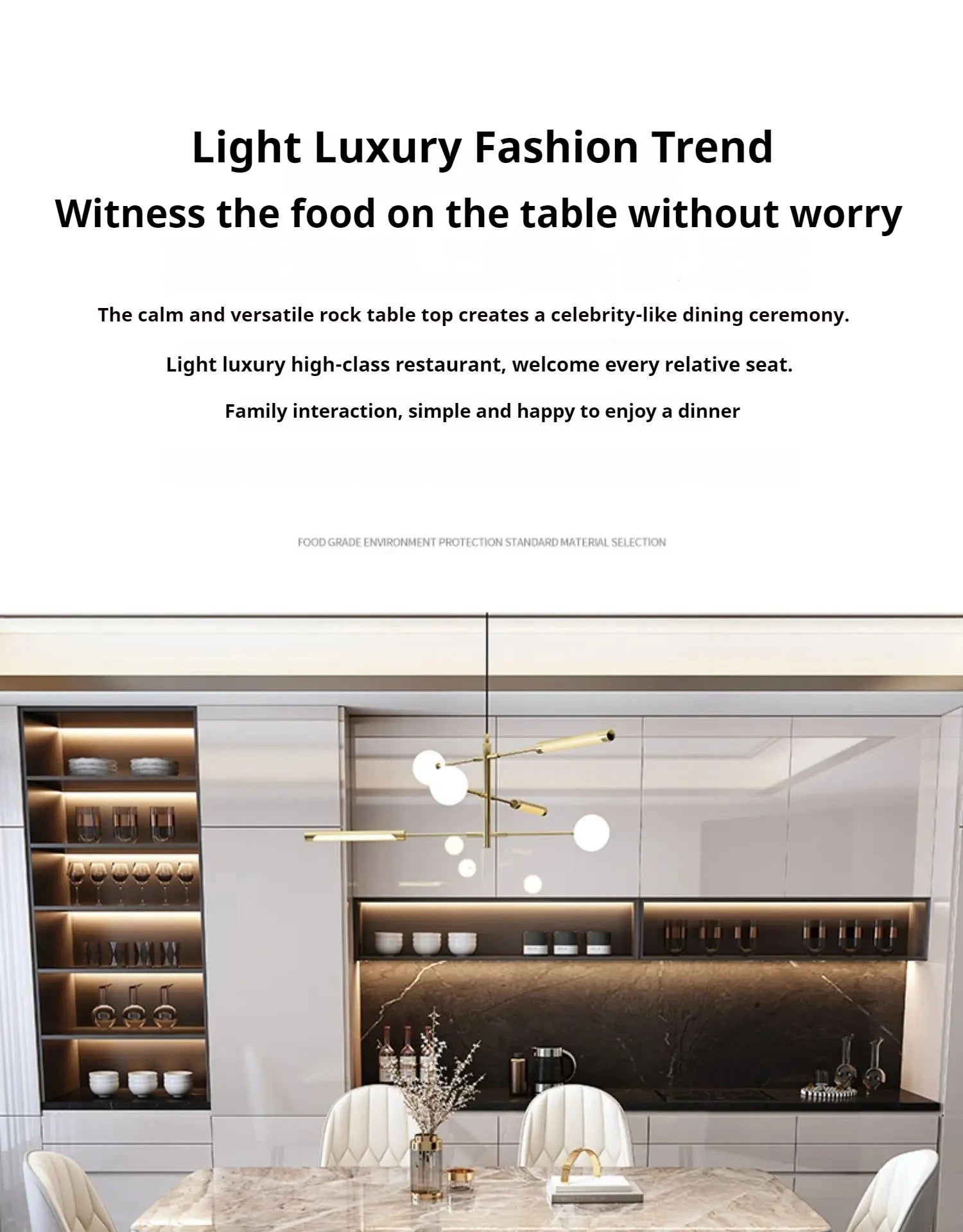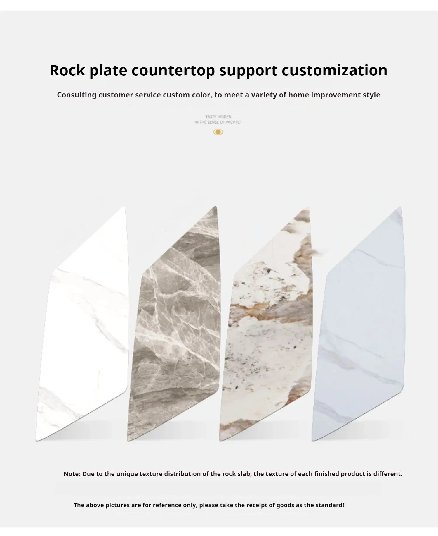 Using high-end rock slabs as the countertop material, rock slabs are known for their excellent physical properties - high temperature resistance, scratch resistance, easy cleaning, and environmentally friendly and non-toxic,