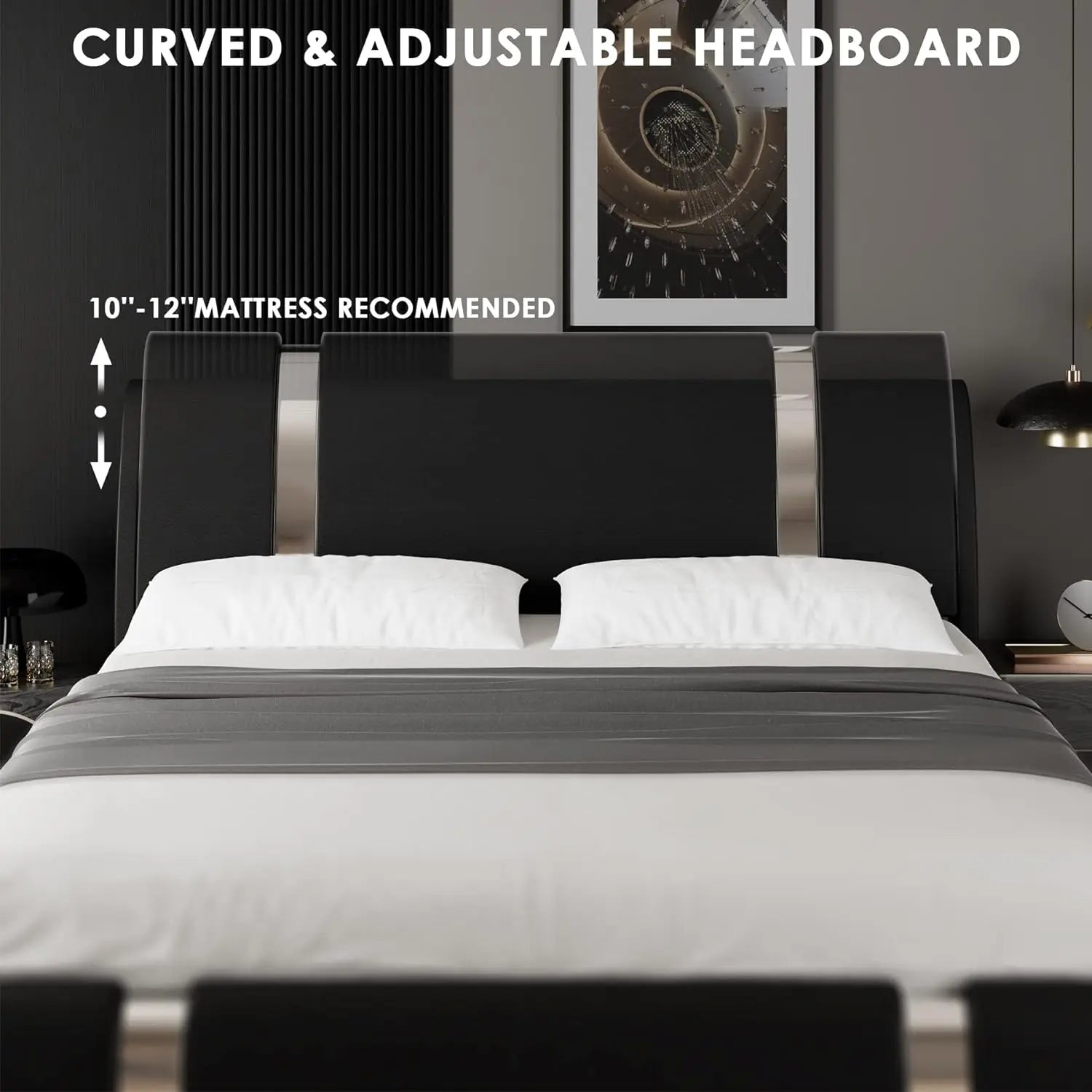 - Adjustable Headboard: The sloping headboard doubles as a backrest for extra comfort. The faux leather headboard is adjustable from 33 to 35.4 inches to accommodate mattresses of different thicknesses. 10-12 inch mattress is recommended.