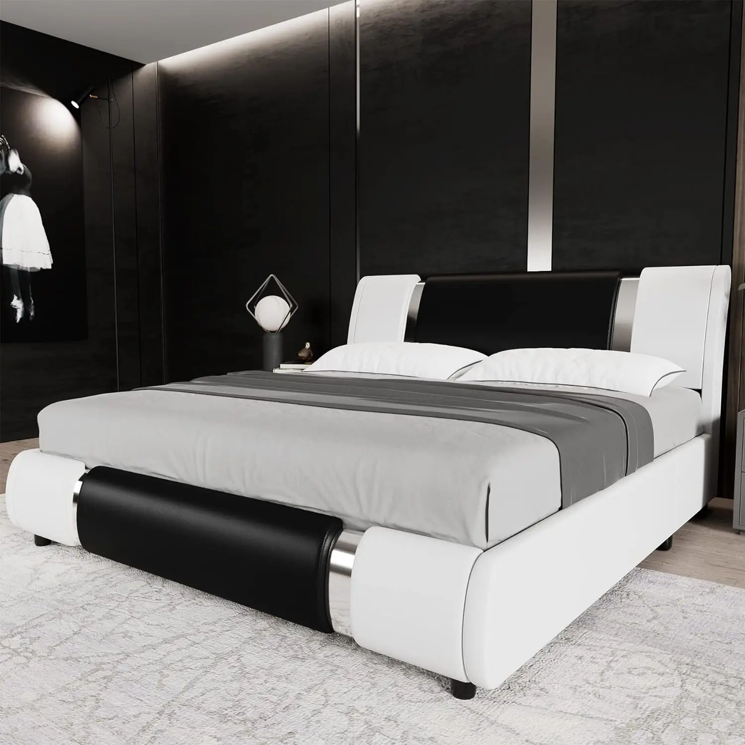 - Modern Upholstered Bed Frame: Decorated with high-quality stainless steel sheets and upholstered in top faux leather , the mirror bed frame adds a chic and modern touch to your bedroom.