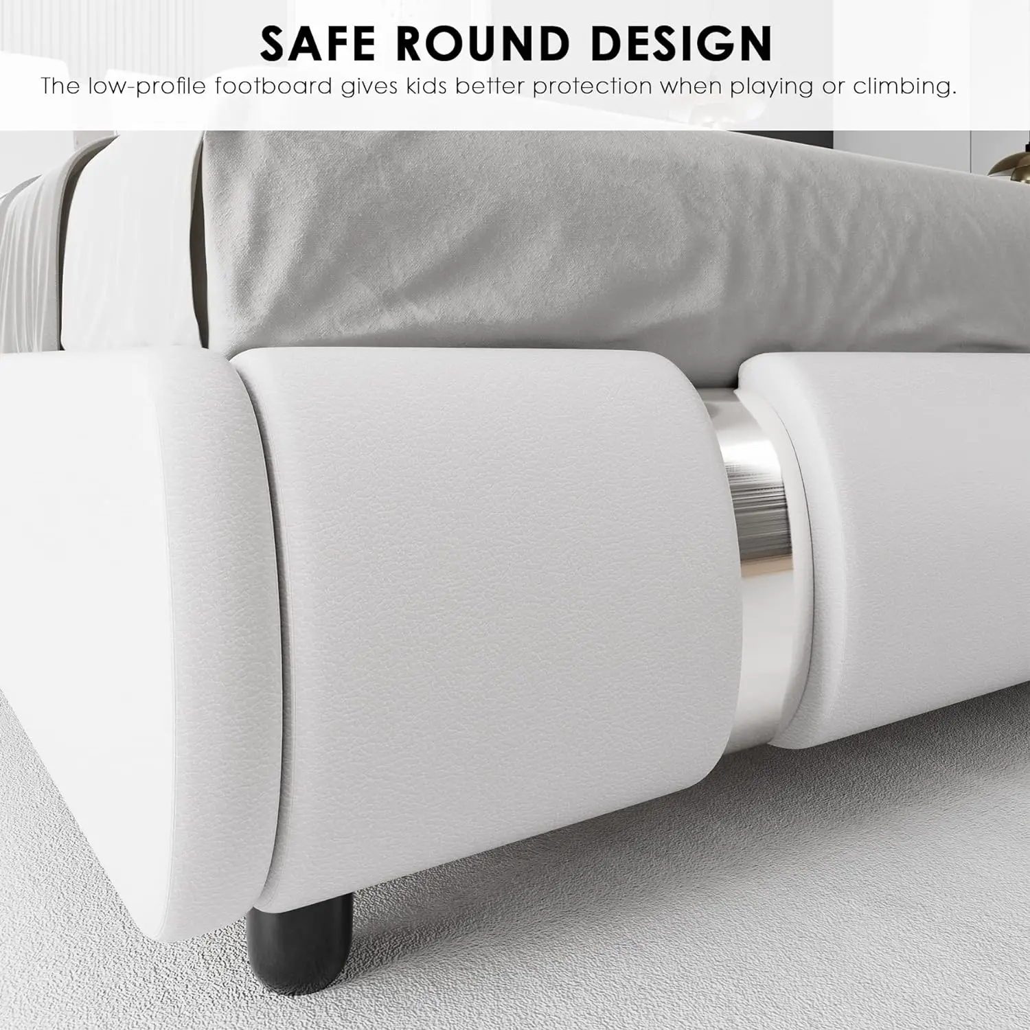 - Safe Round Design: The curved end without any sharp edge can protect your beloved ones safe from injure. Sturdy wooden slats provide a more comfortable and supportive base for your mattress, extending its life without the need for box springs. Slat spacing ensures optimum support and breathability, with a maximum weight capacity of 800 lbs.