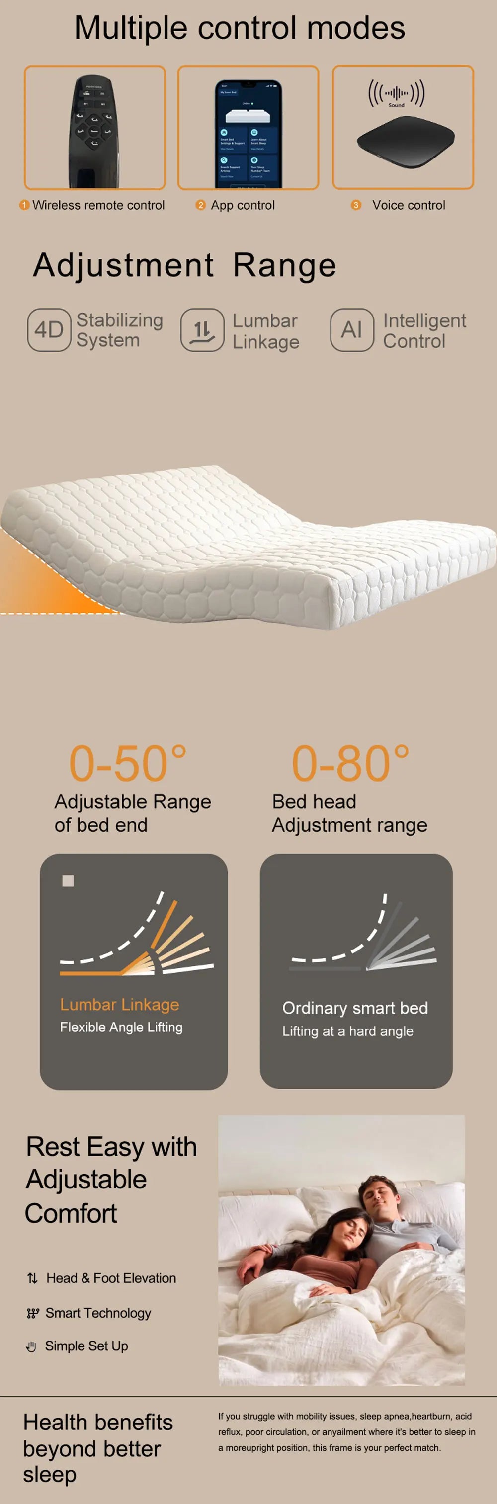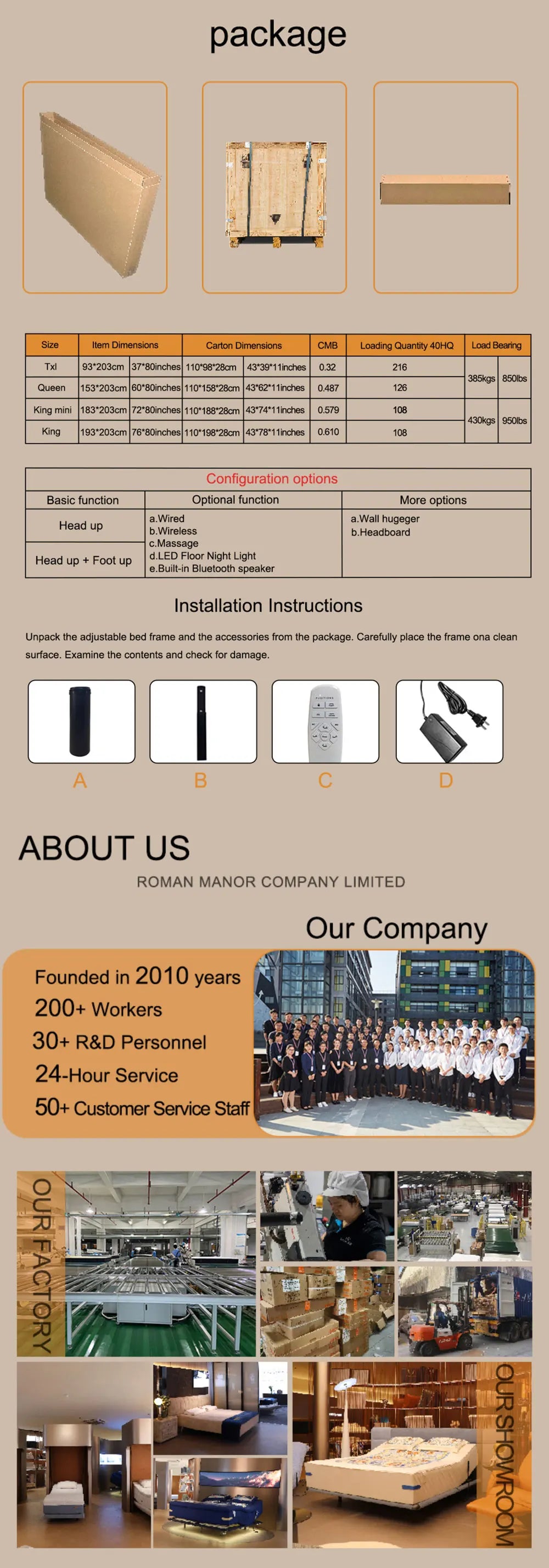 ODM OEM China Made Adjustable Latex Mattresshead and Foot Adjustable Memory Foam Mattress, Wireless Remote Control Foam Mattress