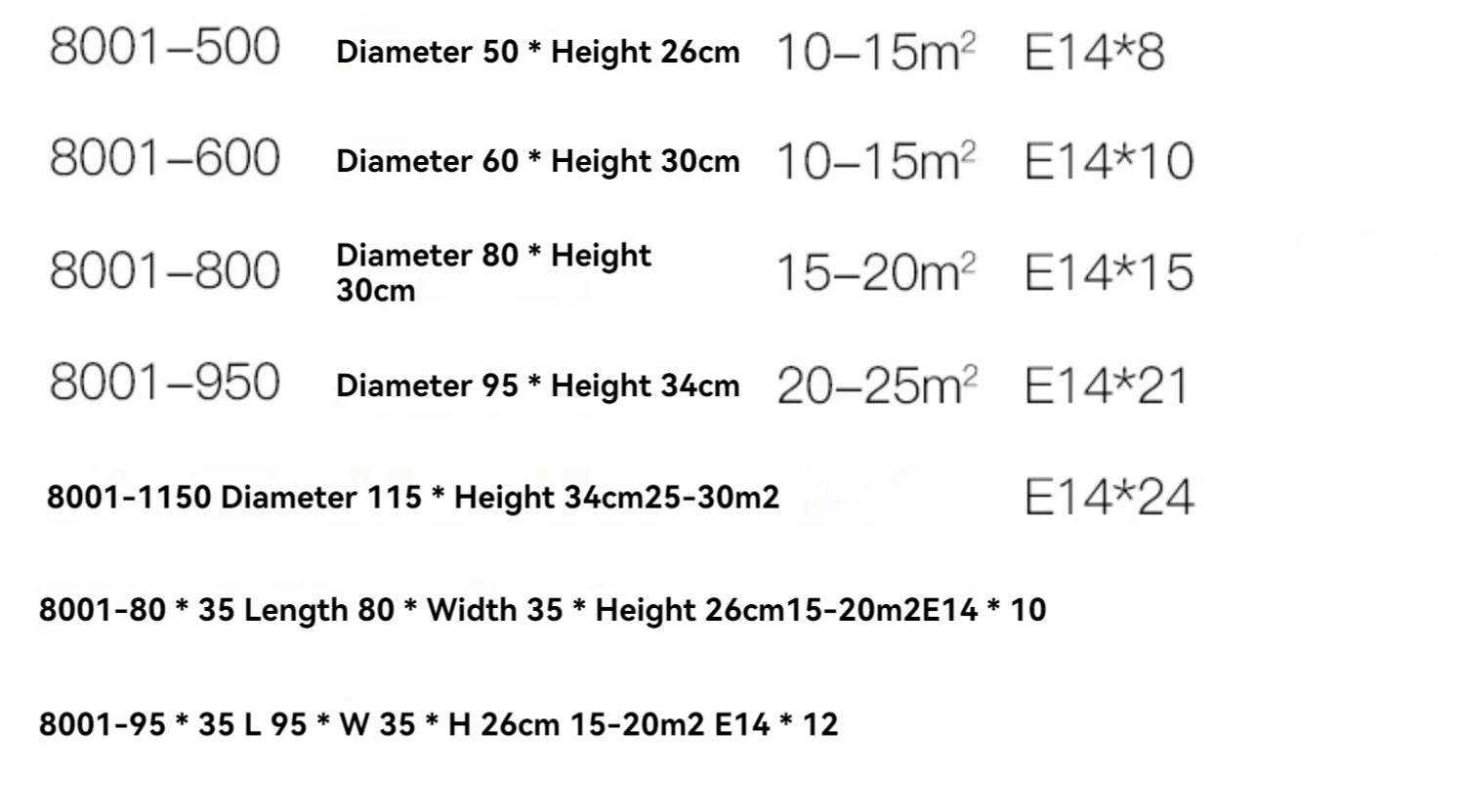Lighting Area: 15-30square meters