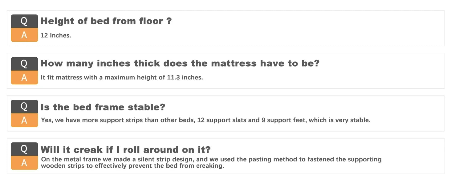 900LBS Capacity: 12 support slats + 9 support feet + heavy duty metal structure