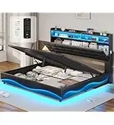 BTHFST Lift Up Storage Bed with Wavelike RGB Light
