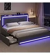 BTHFST RGB Floating Bed Frame with USB & Hidden Storage