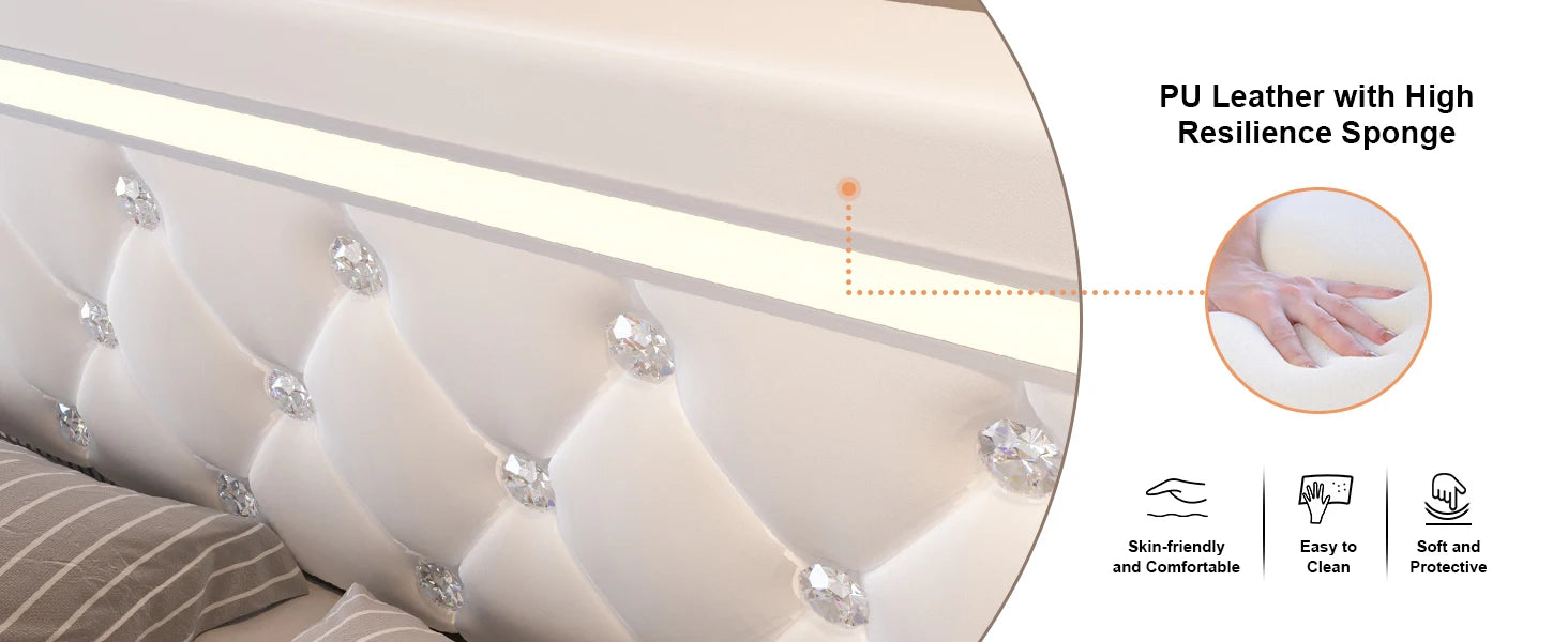 The headboard is made of PU Leather with high resilience sponge, and has the advantage of being easy to clean,skin-friendly and comfortable,soft and protective.Headboard with crystal diamonds, modern style, elegant charming, make your room full of attraction.