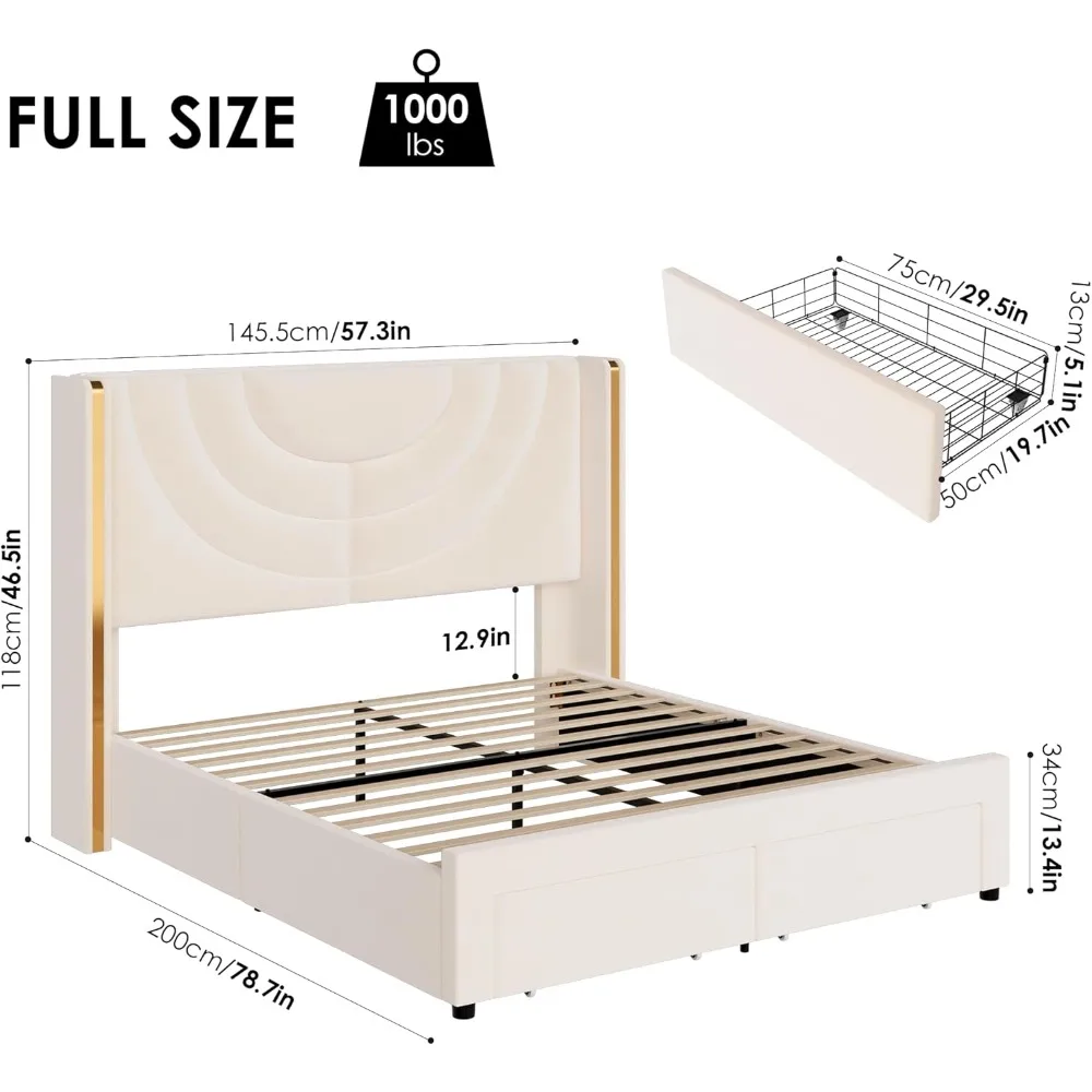 - Ample Under-bed Storage: Need extra storage? Under-bed storage maximizes unused space. 2 Footboard drawers of the LED bed frame offer plenty of space to store sheets, accessories, and off-season clothing, keeping your bedroom organized