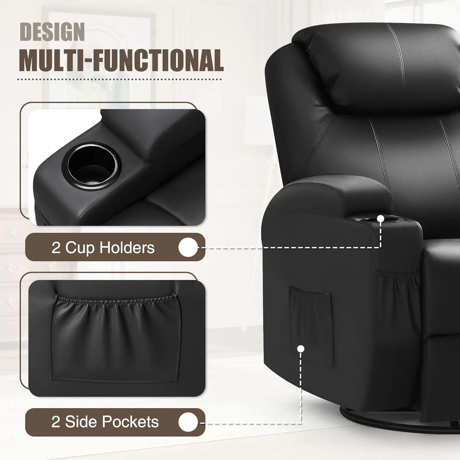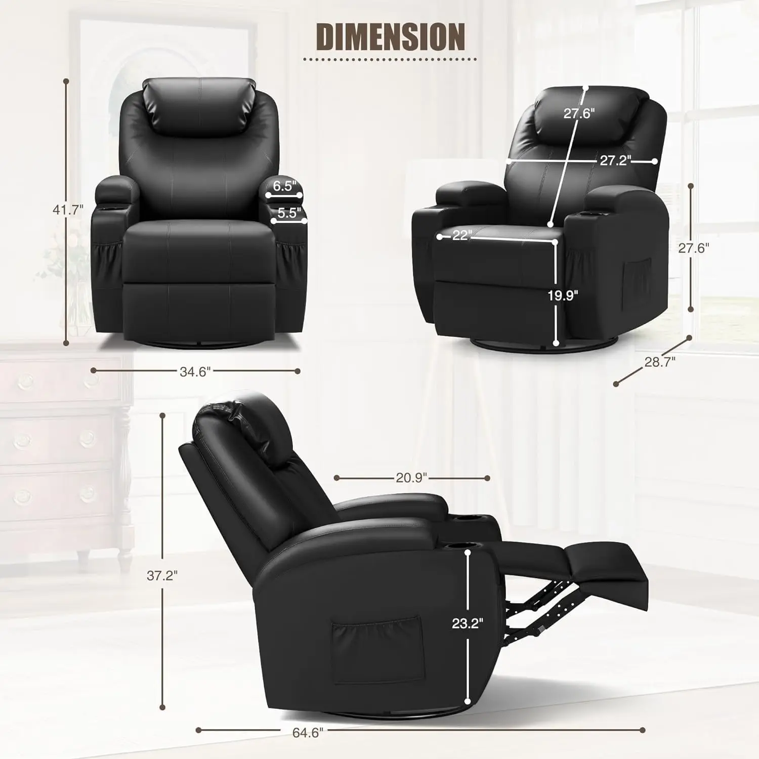 Recliner Chair, Rocking Massage Chairs, Home Reclining Sofa Chair, PU Leather, Ergonomic Living Room Chair with Cup Holders