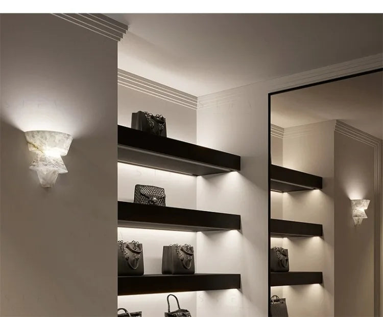Spanish Marble Wall Lamp Modern Luxury LED Wall Light Creative Living Room Bedroom Corridor Bathroom Villa Wall Decor G9 Bulb