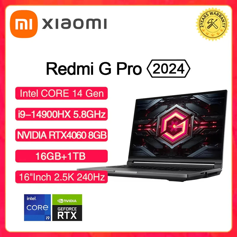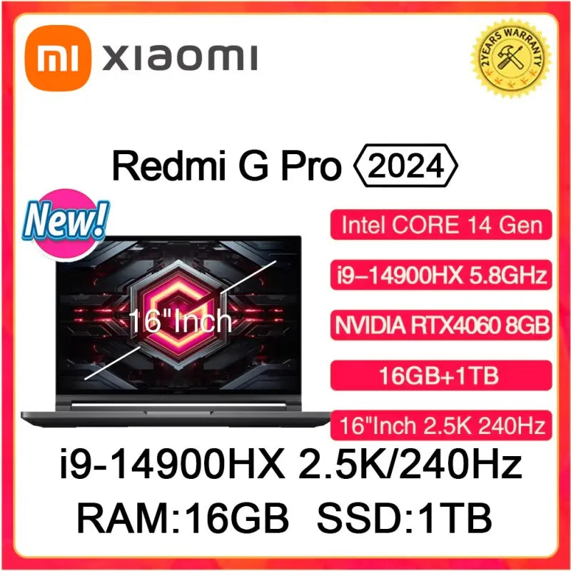 XIAOMI Redmi G Pro 2024 Gaming Laptop NVIDIA Geforce RTX 4060 Intel Core i9-14900HX 16"Inch RAM 16GB SSD 1TB 2.5K 240Hz Gamer PC