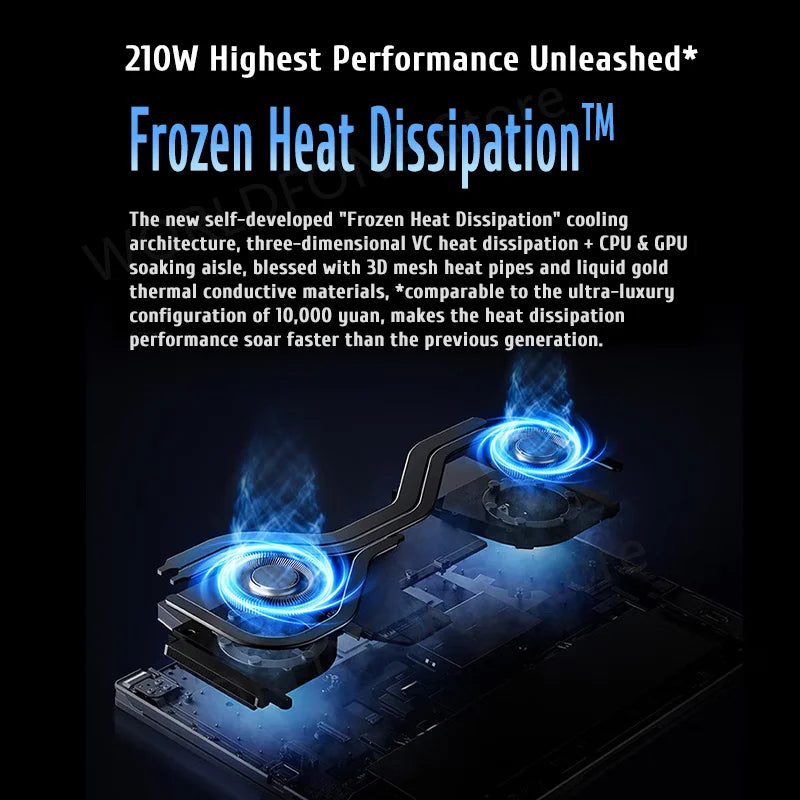 The new self-developed "Frozen Heat Dissipation" Cooling architecture, three dimensional VC heat dissipation + CPU & GPU soaking aisle, blessed with 3D mesh heat pipes and liquid gold
