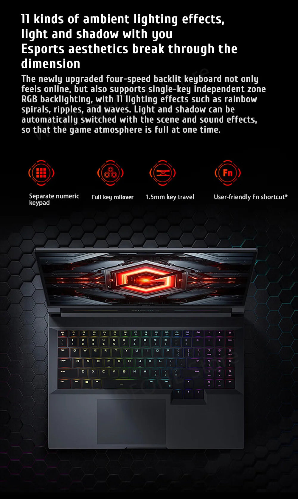 Light effect: keyboard light effect, A-Logo light effect, C-Cover light effect