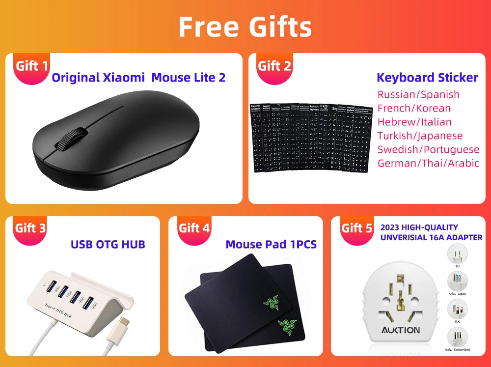 Free Gifts(Mini HUB + Mi 2Gen Wireless Mouse + Mouse Pad + Keyboard Sticker)