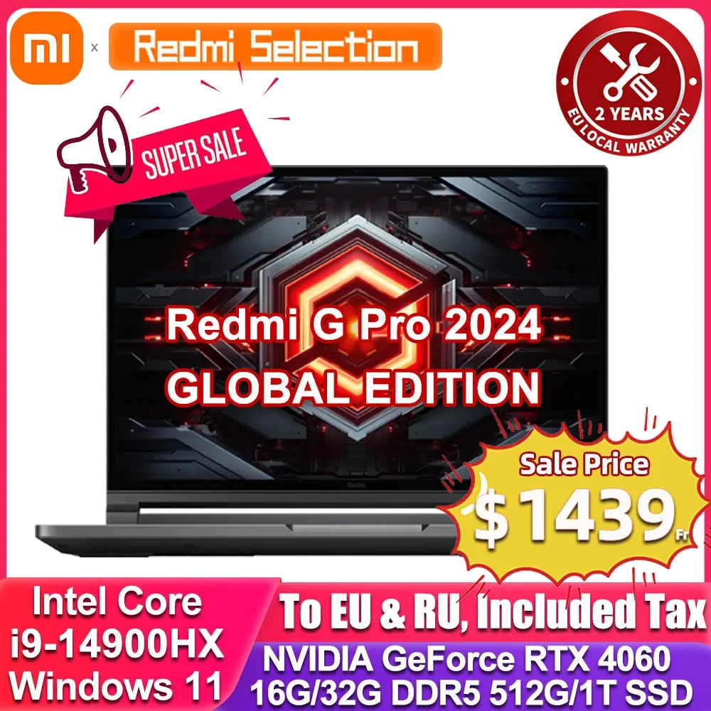 Xiaomi Redmi G Pro Gaming laptop 2024 Core i9-14900HX/i7-14650HX RTX 4060 RAM 16GB/32GB DDR5 1TB SSD 16-inch 240Hz Screen PC