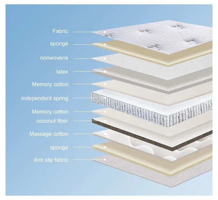 12 Inch Queen Size Memory Foam Mattress 26CM High Density Foam Compress Pocket Spring Mattresses for King Size Bed