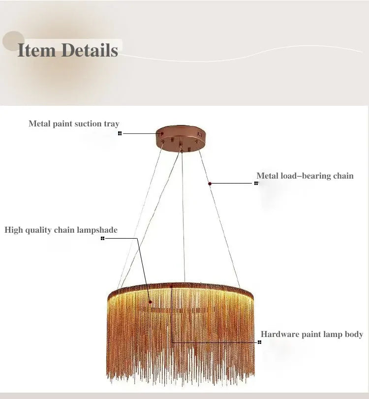2024 Modern Art Decor Tassel Pendant Lamps Chain Chandelier for Bedroom Living Room Restaurant Lights Winfordo 110V / 220V