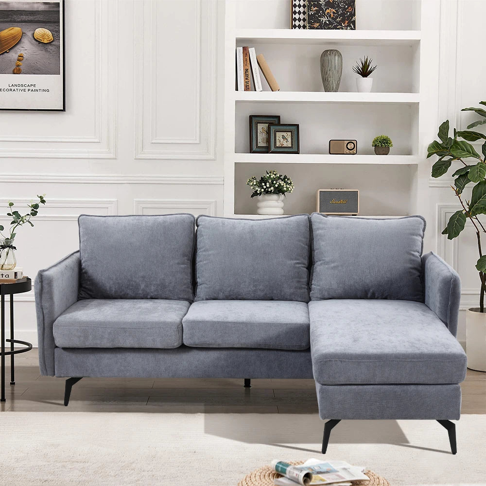 3 Seater Upholstered Corner Sectional Sofa Modern L-Shape Living Room Sofa, 193x136x73cm