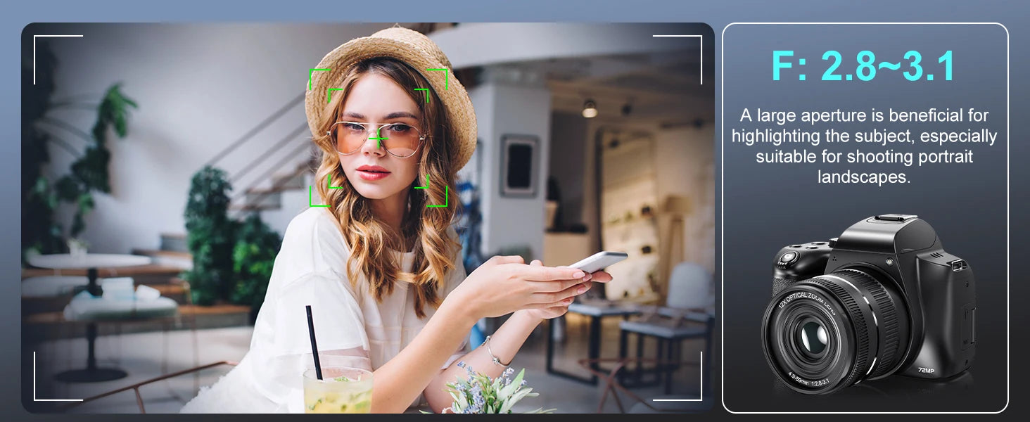 4K HD Digital Camera for Photography Auto Focus 12X Optical Zoom Vlogging Camera for YouTube 72MP WiFi Livestream Video Cameras