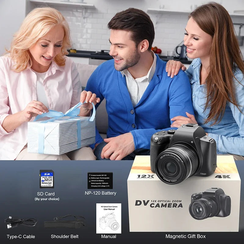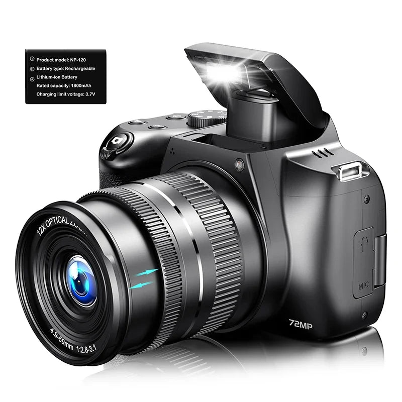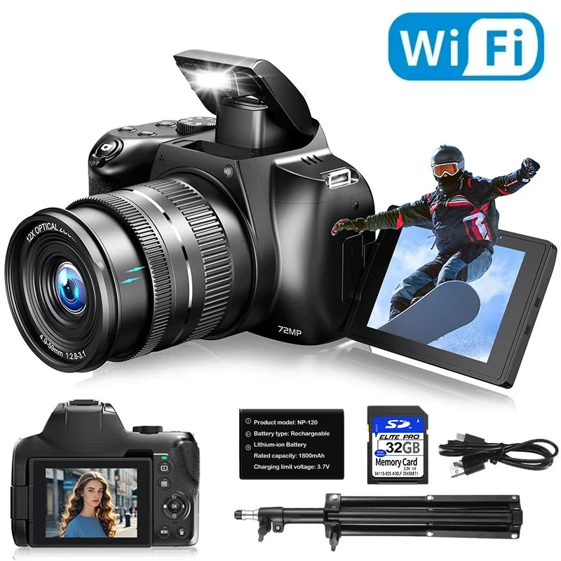 72MP Digital Camera 180° Flip Screen 3 lnch SLR DSLR 4K Camera for Photography 12X Optical Zoom Autofocus Anti-Shake Camera