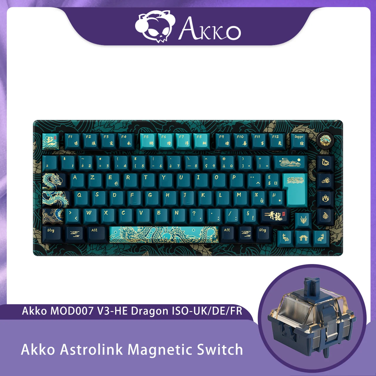 MOD 007 HE Year of Dragon(V2) provides compatibility with 5 third-party magnetic switches. Users can choose the appropriate switch from the Akko Driver list and calibrate the keyboard easily after replacement. Mixing and matching them in different keys is also possible.