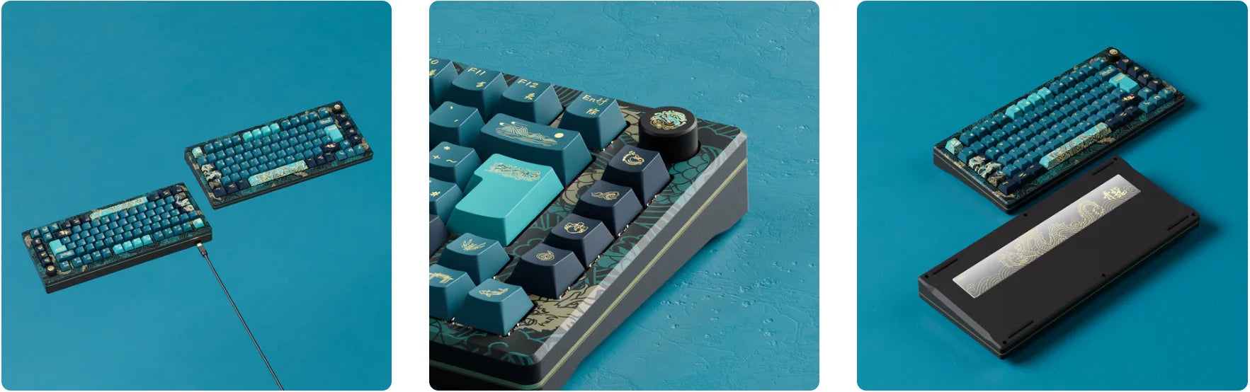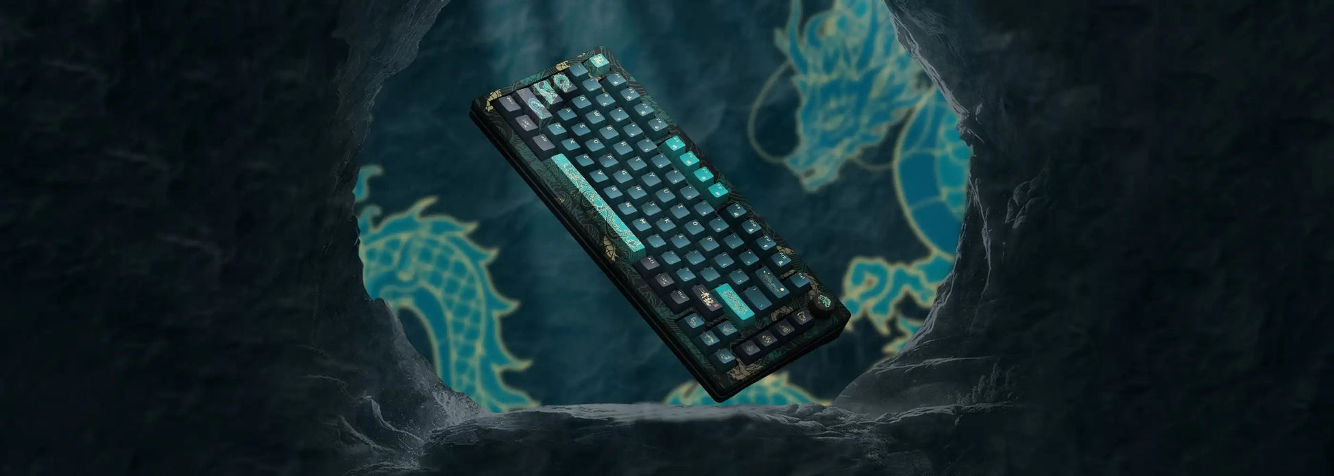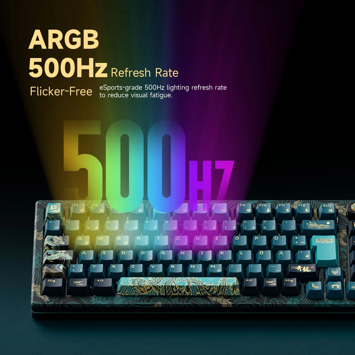 Utilize a cyan color scheme featuring elements inspired by the 'Year of Dragon'. The PBT keycaps boast exceptional oil resistance, enhancing the overall typing experience while ensuring the longevity of the legends' visibility.