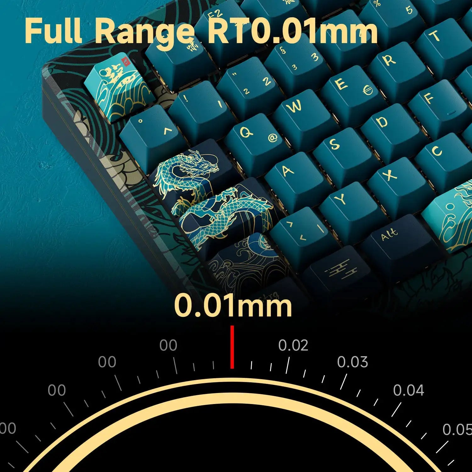 MOD 007 HE Year of Dragon (V2) attain ultra-precise 0.01mm Rapid Trigger and adjustable actuation distance in 0.01mm steps. Users can adjust their typing or gaming experience for faster response times and improved accuracy, perfect for competitive gaming.