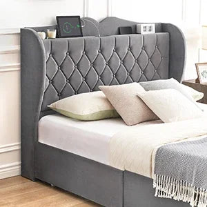 LUXURIOUS BED WITH STORAGE HEADBOARD & CHARGING STATION