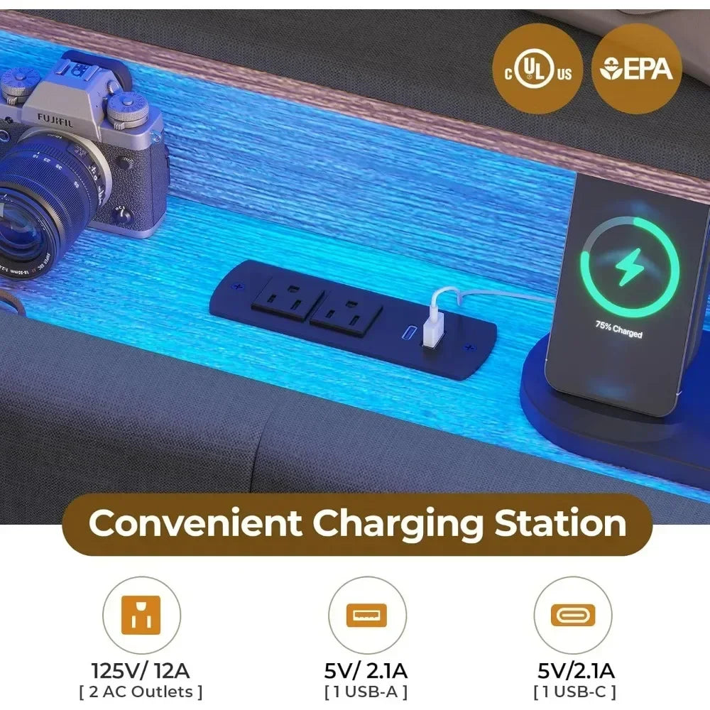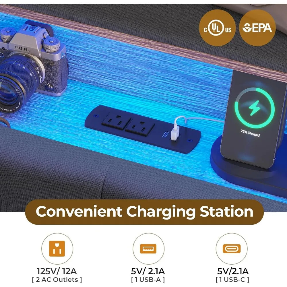 - 【Equipped with Charging Station】The built-in power strip on the headboard includes 1 Type-C port, 1 USB port and 2 standard outlets, which is very convenient for you to charge your mobile phone, tablet, headphones or other electronic devices. The design ensures that your devices are always within reach.