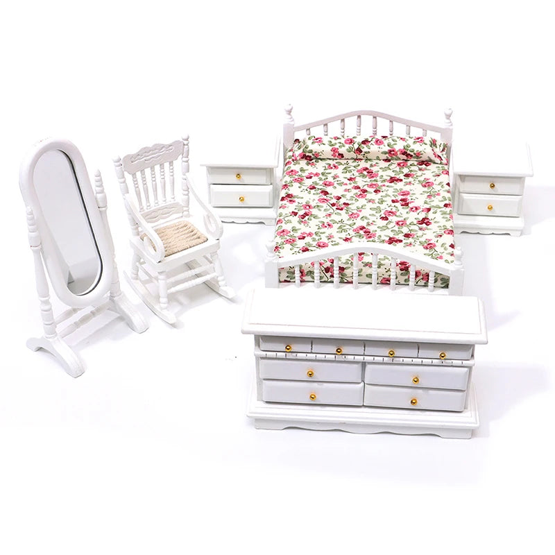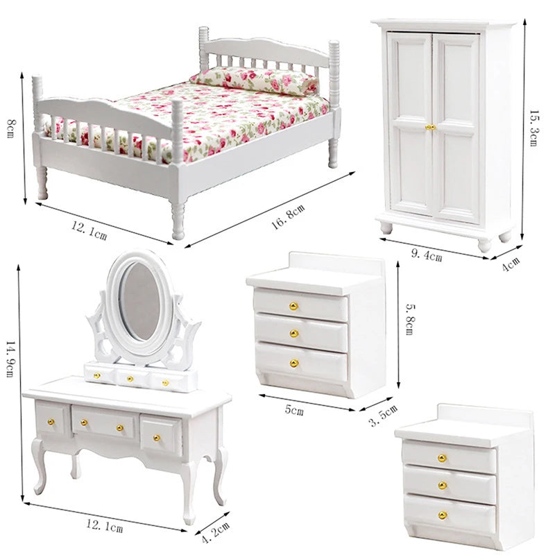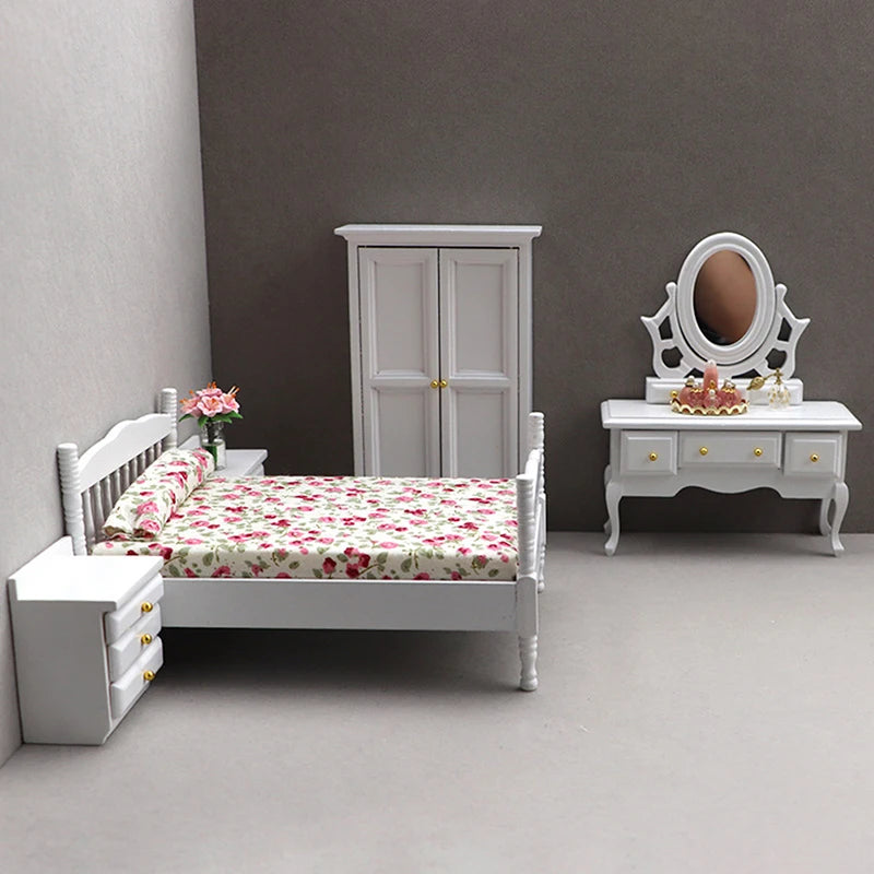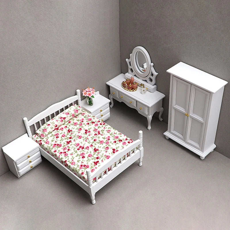 Beds & Furniture Bedroom Set Furniture Wooden Wardrobe for Bedroom Miniature Wardrobe Dolls Dollhouse Bedroom Bed Dresser