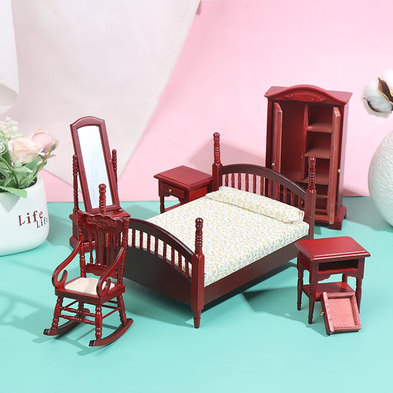 1:12 Dollhouse Miniature Furniture Red Fashion Bedroom Set 6PCS
