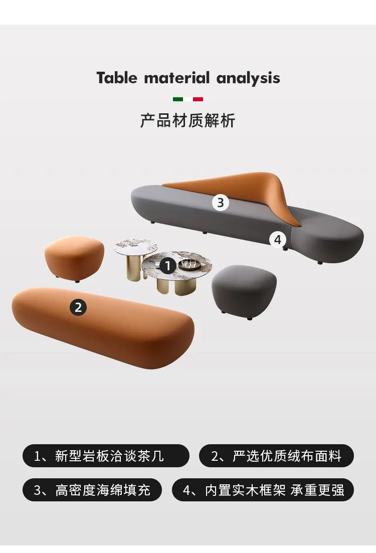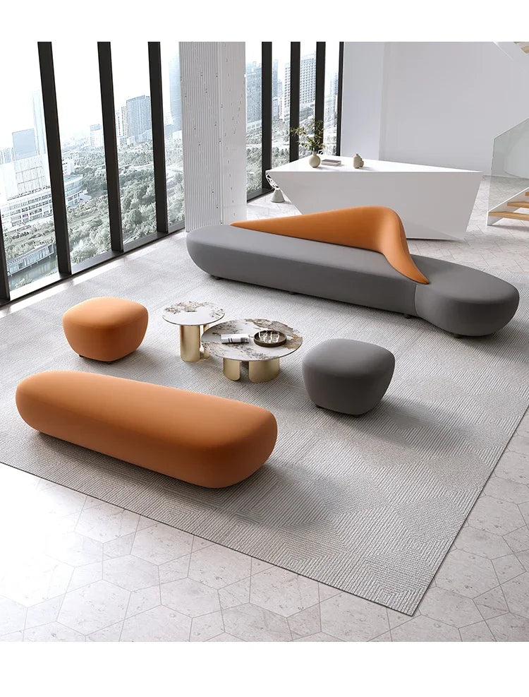 Beige Living Room Sofa European Nordic Sectional Curved Lounge Chaise Couch Puffs Double Lazy Italian Divano Soggiorno Furniture