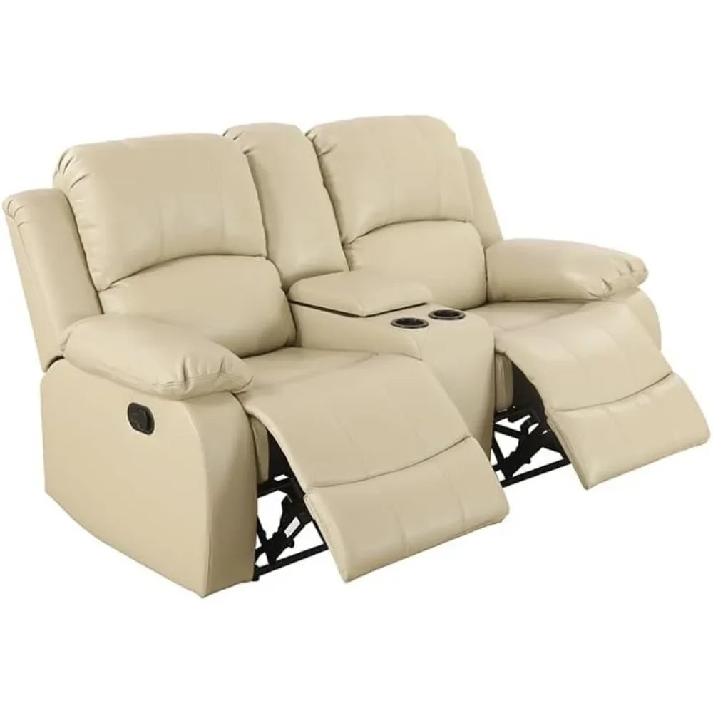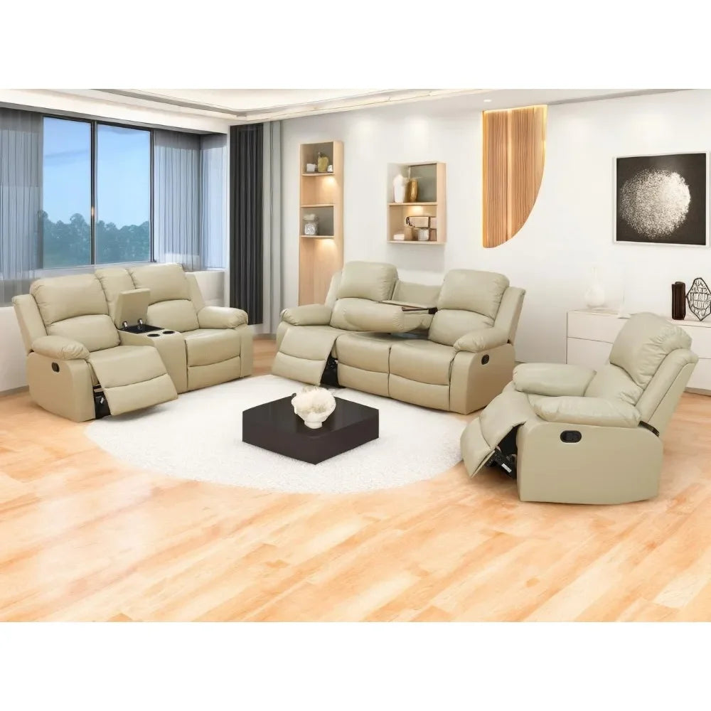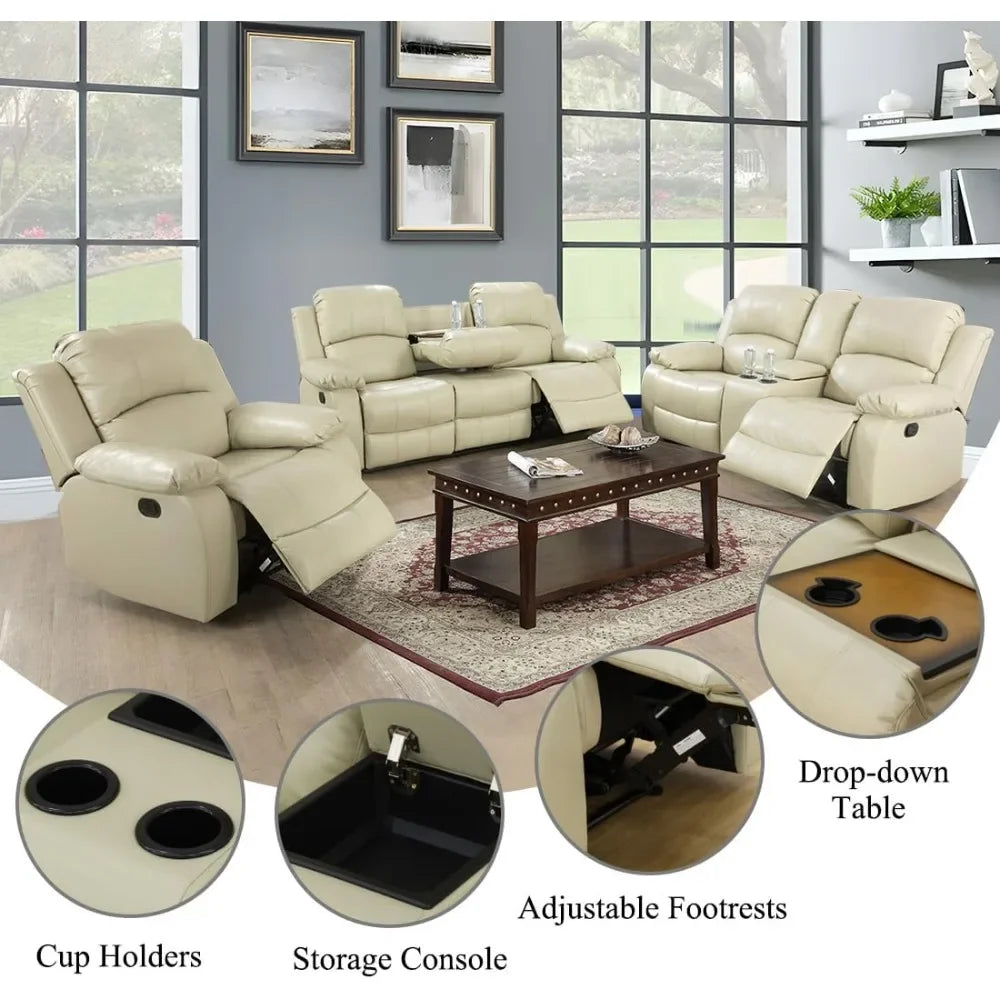 Beige Recliner Sofa Set, Manual Reclining Sofa Living Room Furniture Sets Bonded Leather Reclining sofas(Beige, 3PCS Set)