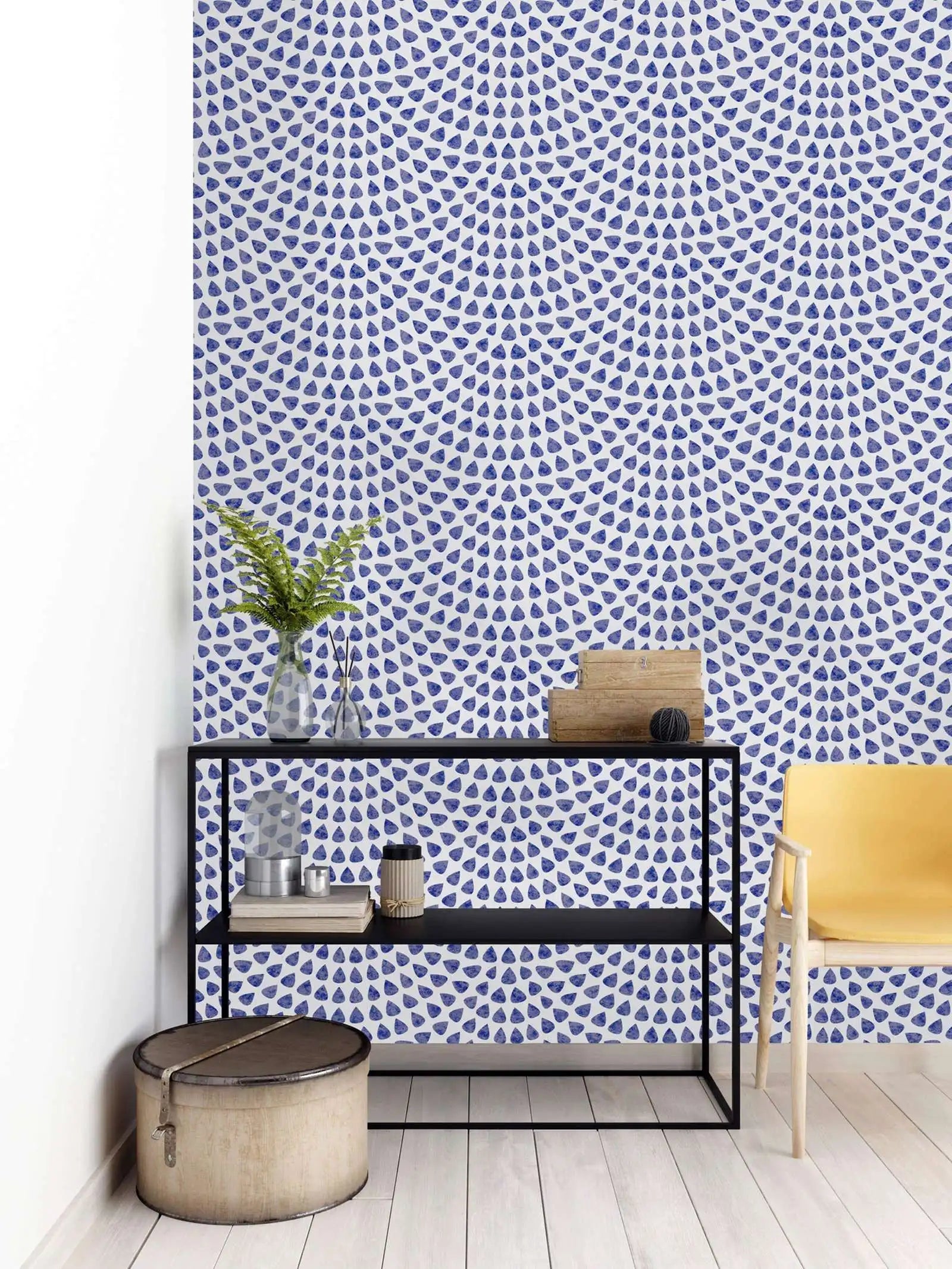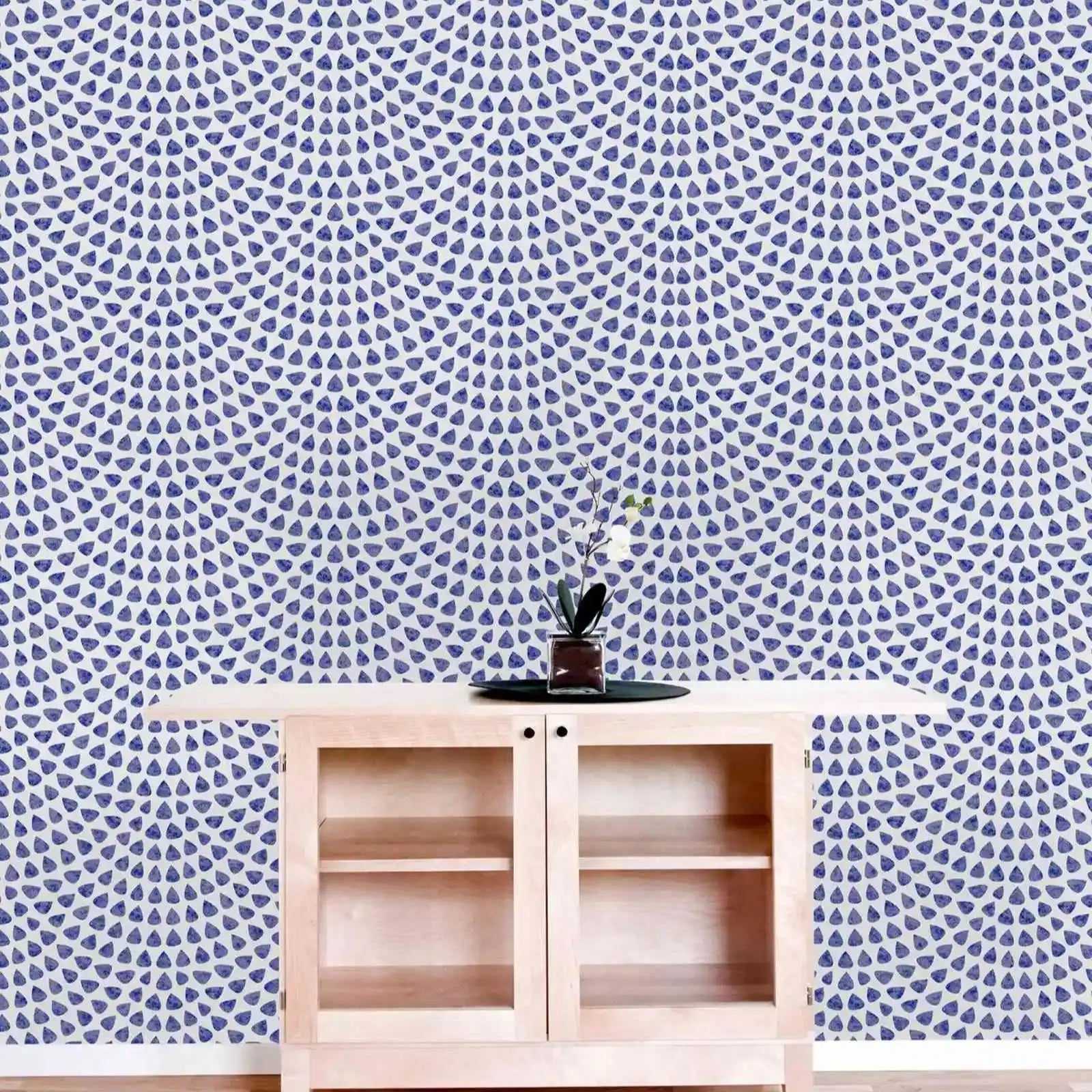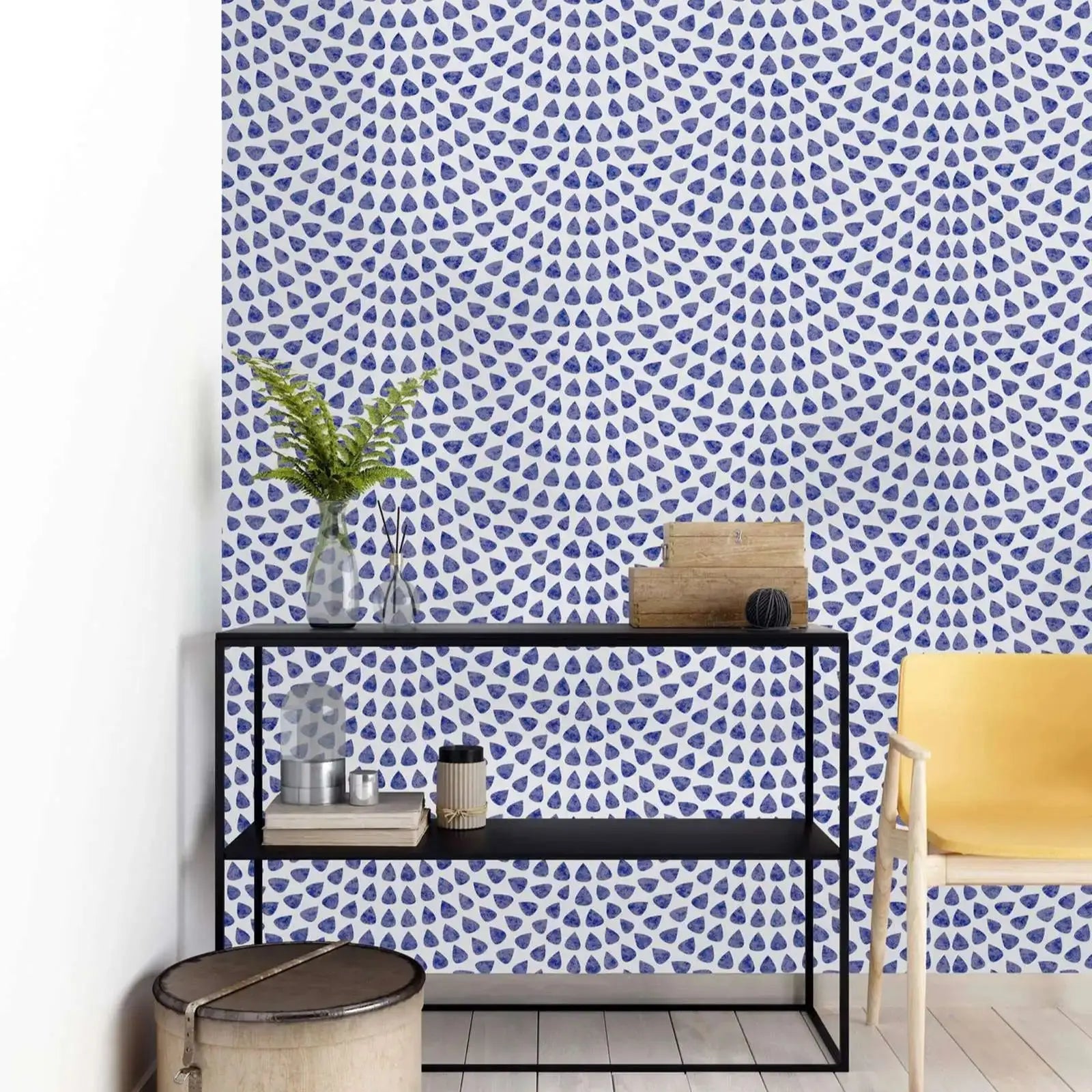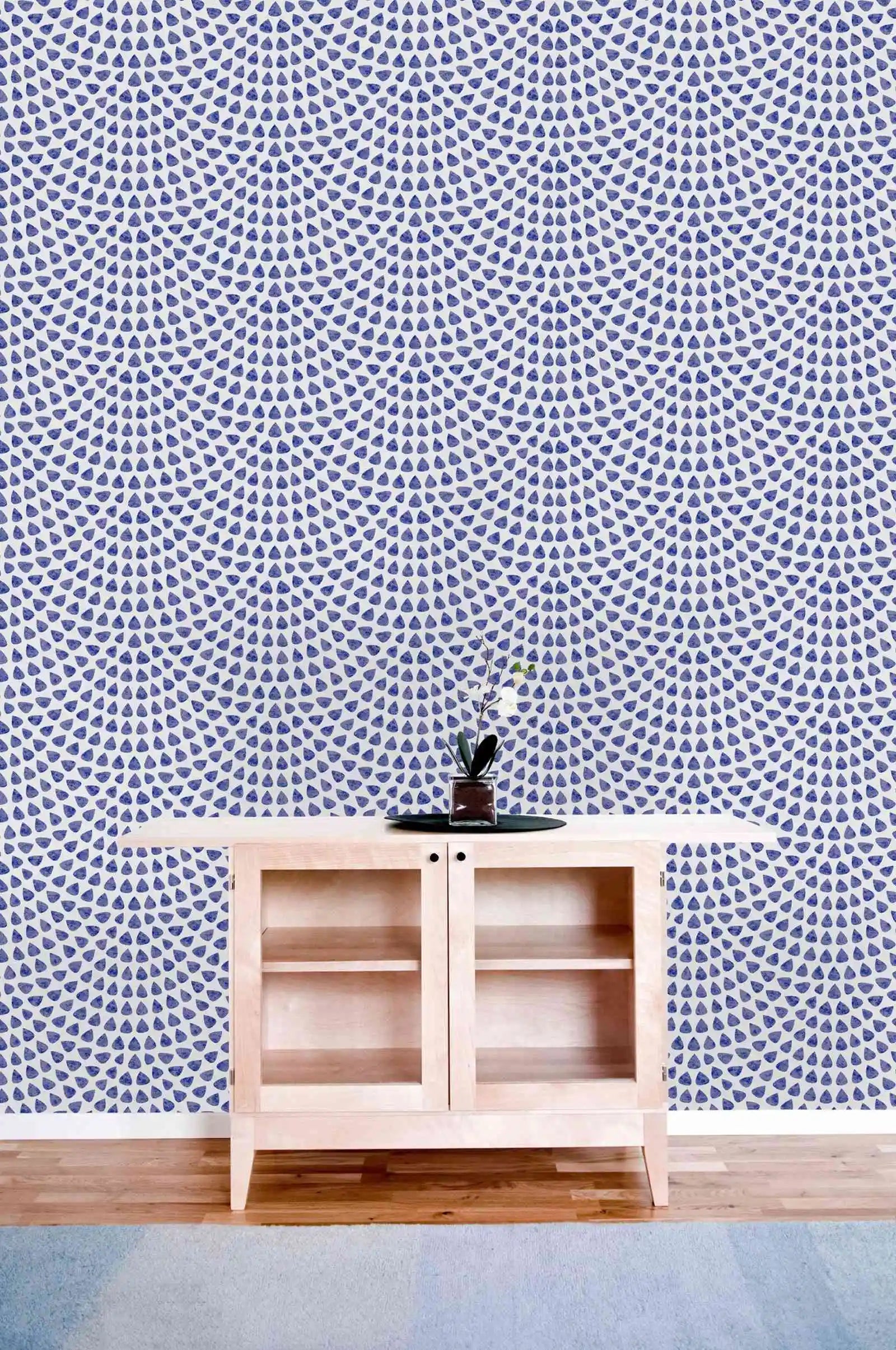 Blue drop-shaped Wallpaper ,Blue Fish Scale Wall Paper Mural,Peel and Stick Wall Papers Roll On White Background