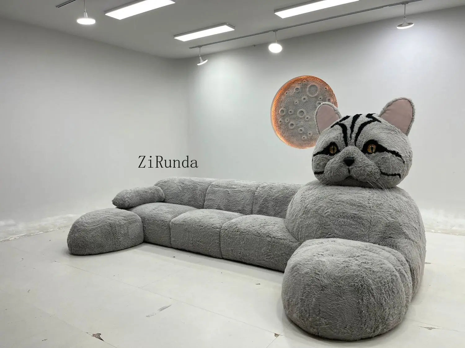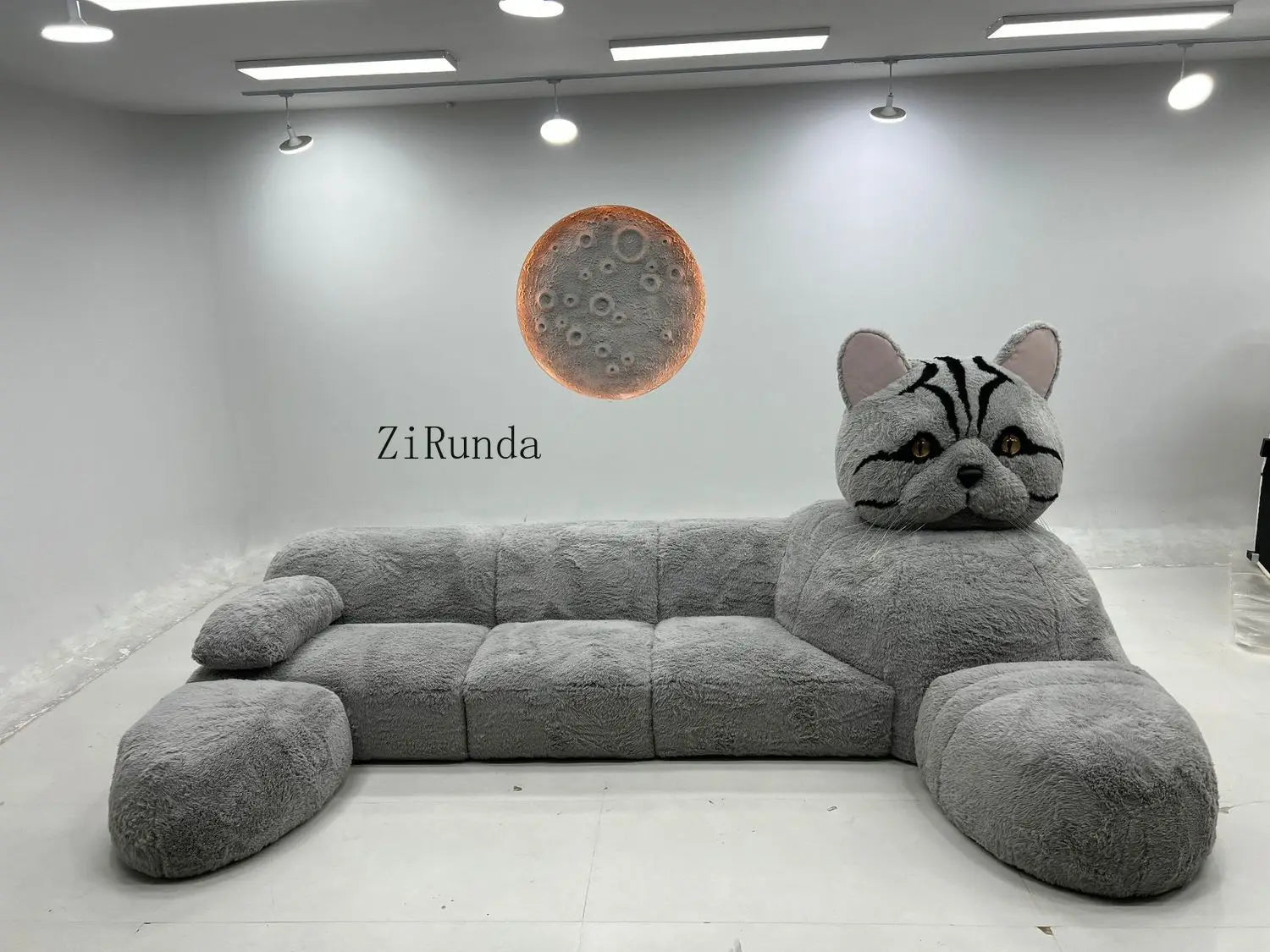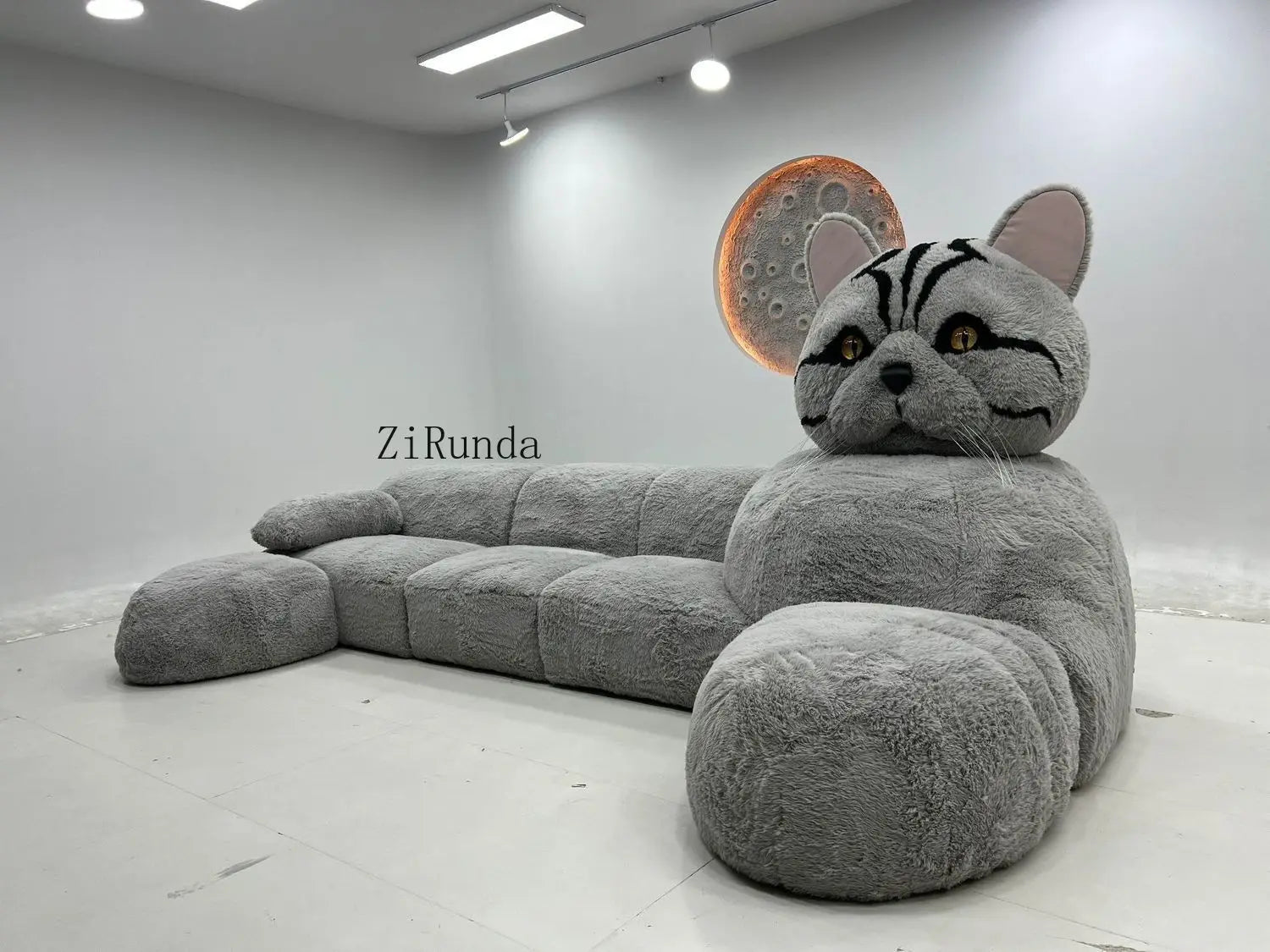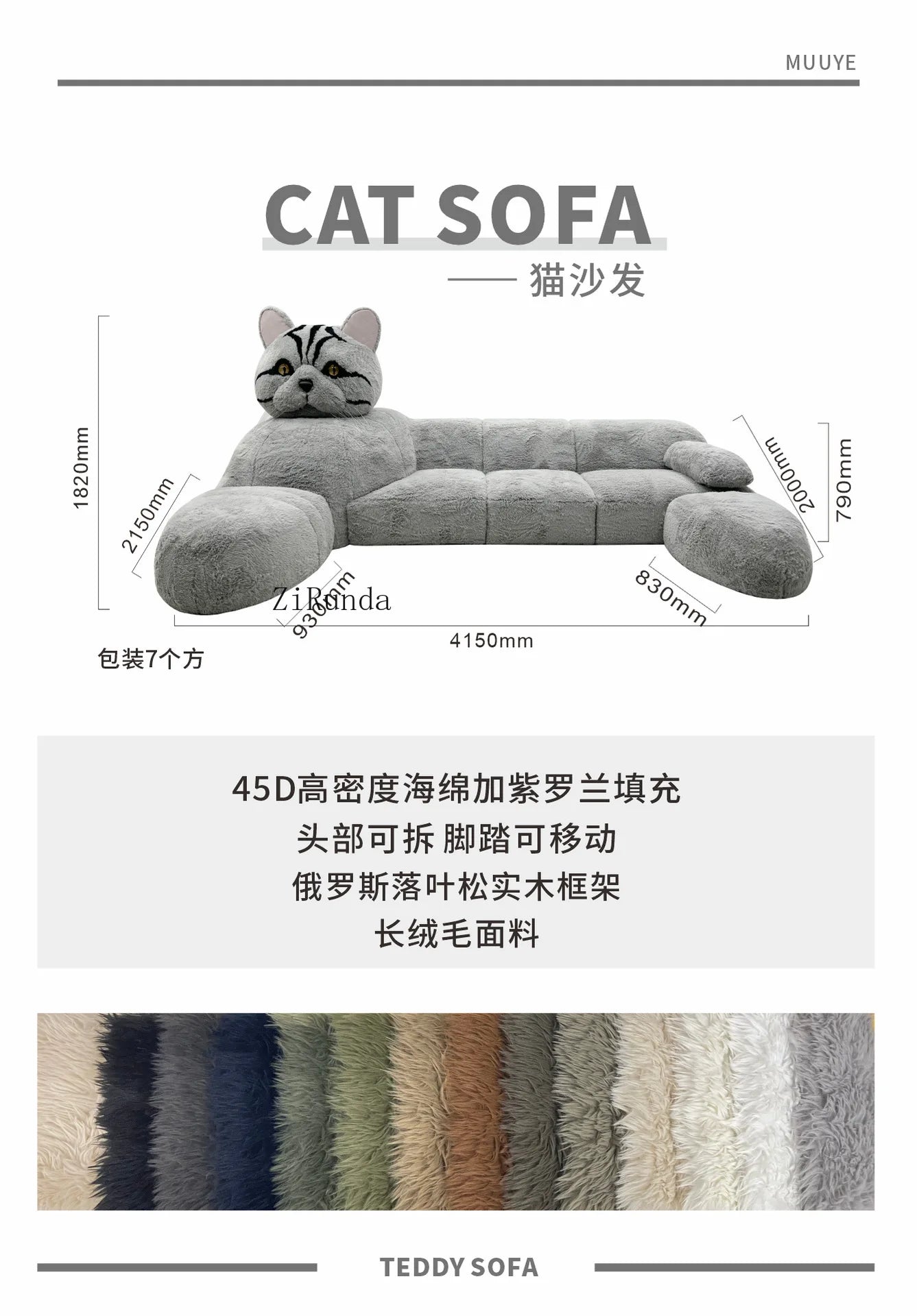 Cat-shaped cartoon animal sofa living room creative size apartment fabric plush sofa