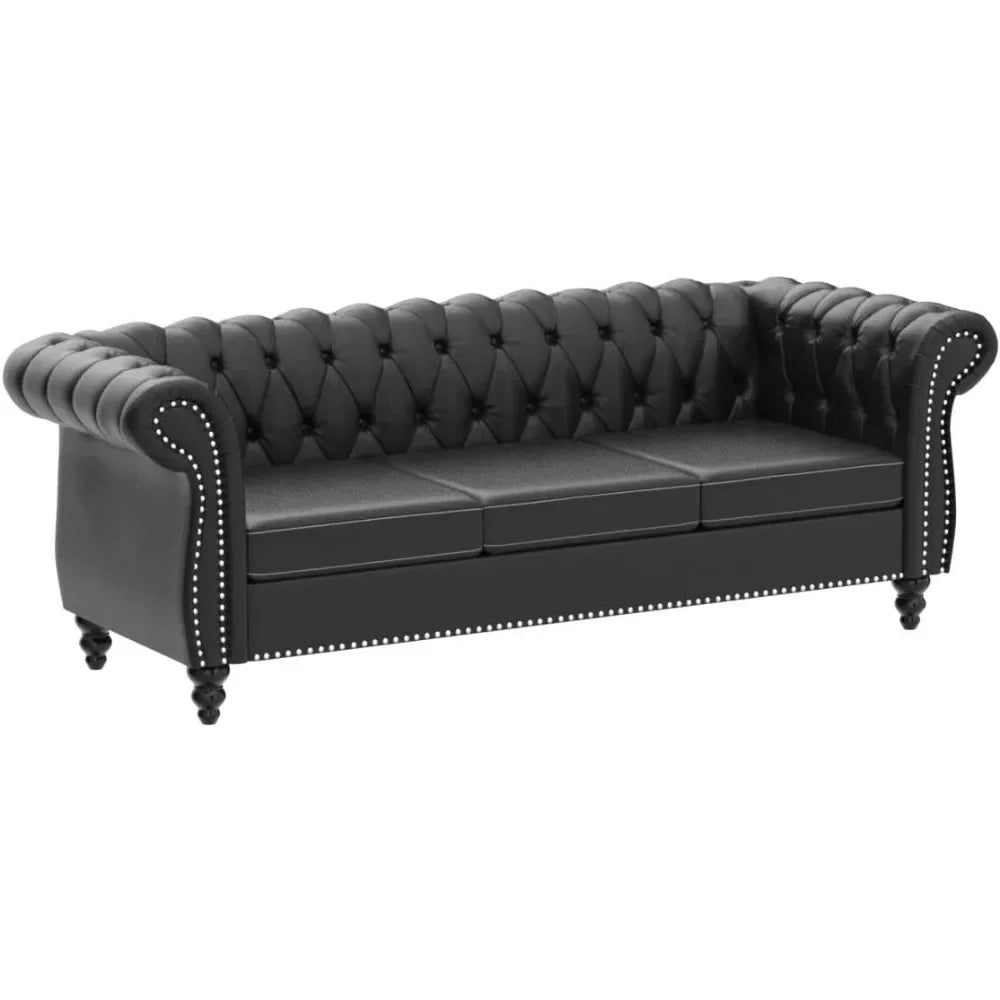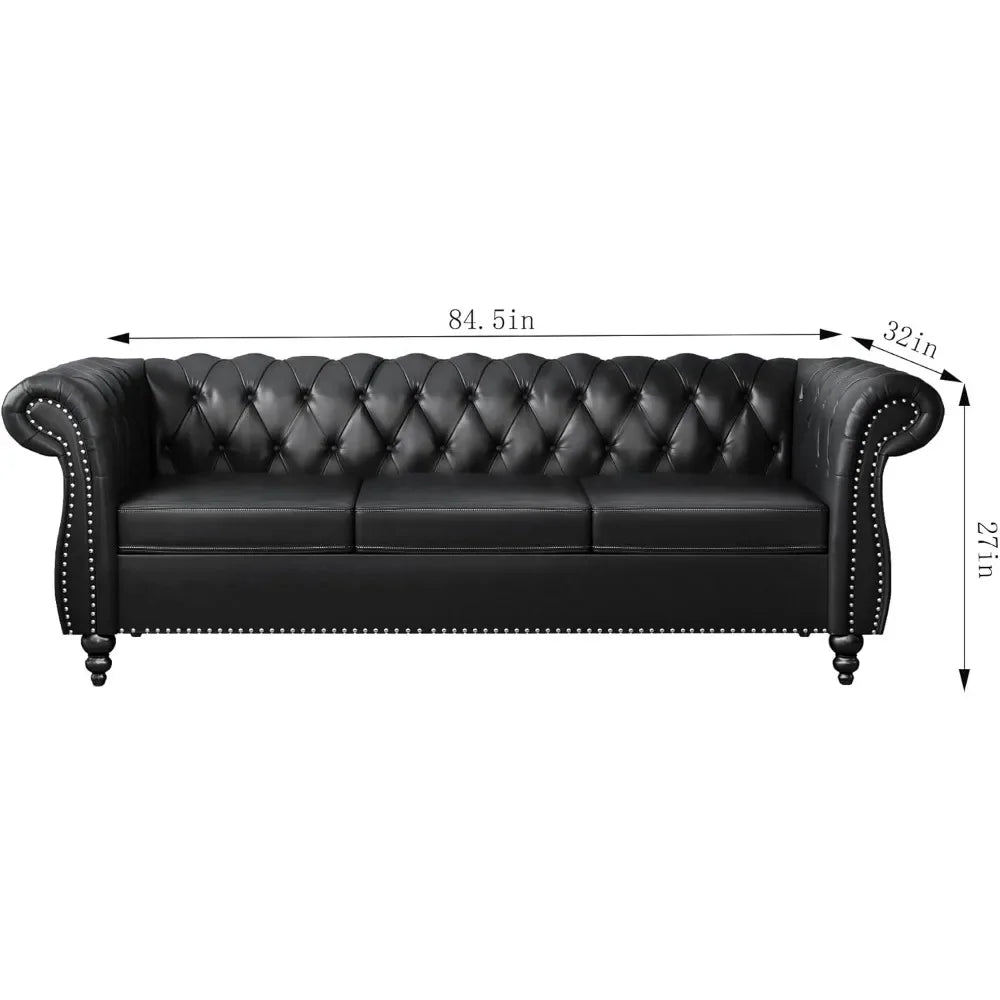 Chesterfield Sofa Leather for Living Room, 3 Seater Sofa Tufted Couch Faux Leather with Rolled Arms and Nailhead for Living Room